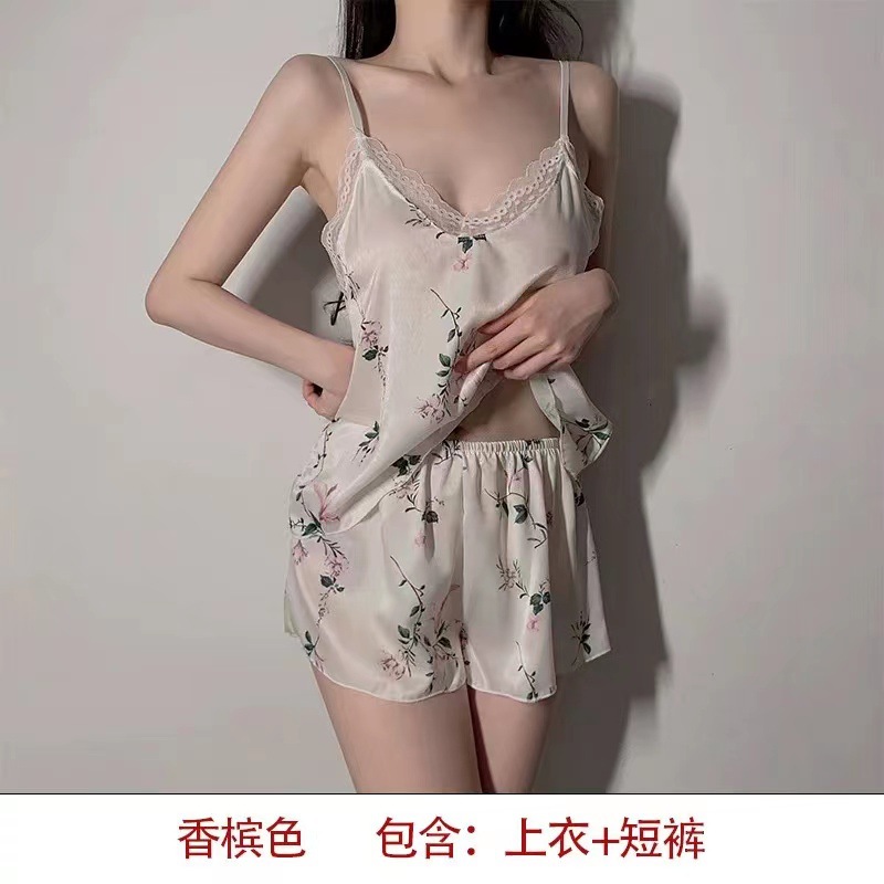여성용 빅사이즈 여름 잠옷, 인스 스타일 아이스 실크 끈반바지 투피스 세트, 얇고 달콤한 소녀풍 홈웨어스토어 가기