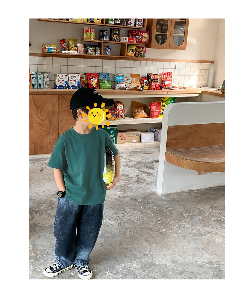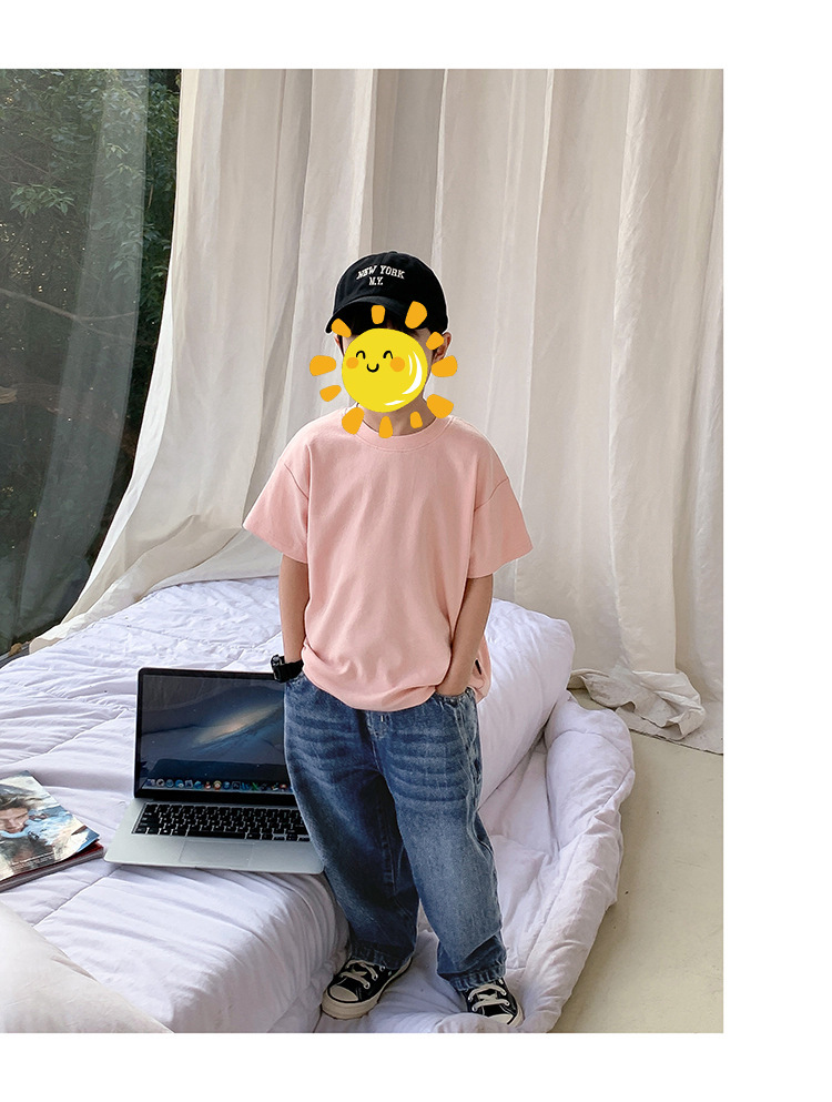 면 단색 아동복 남녀 반팔 티셔츠 여름 유치원 학급 의류 어린이 아기 반팔 자켓 도매스토어 가기