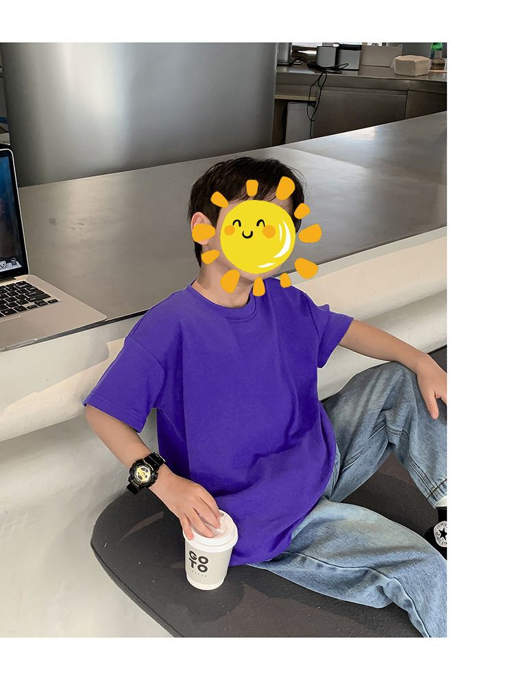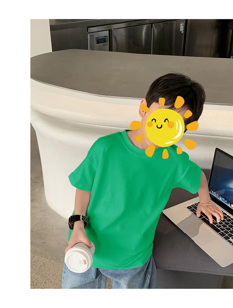면 단색 아동복 남녀 반팔 티셔츠 여름 유치원 학급 의류 어린이 아기 반팔 자켓 도매