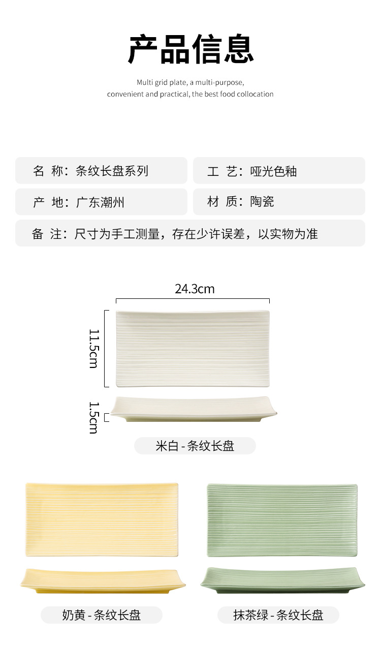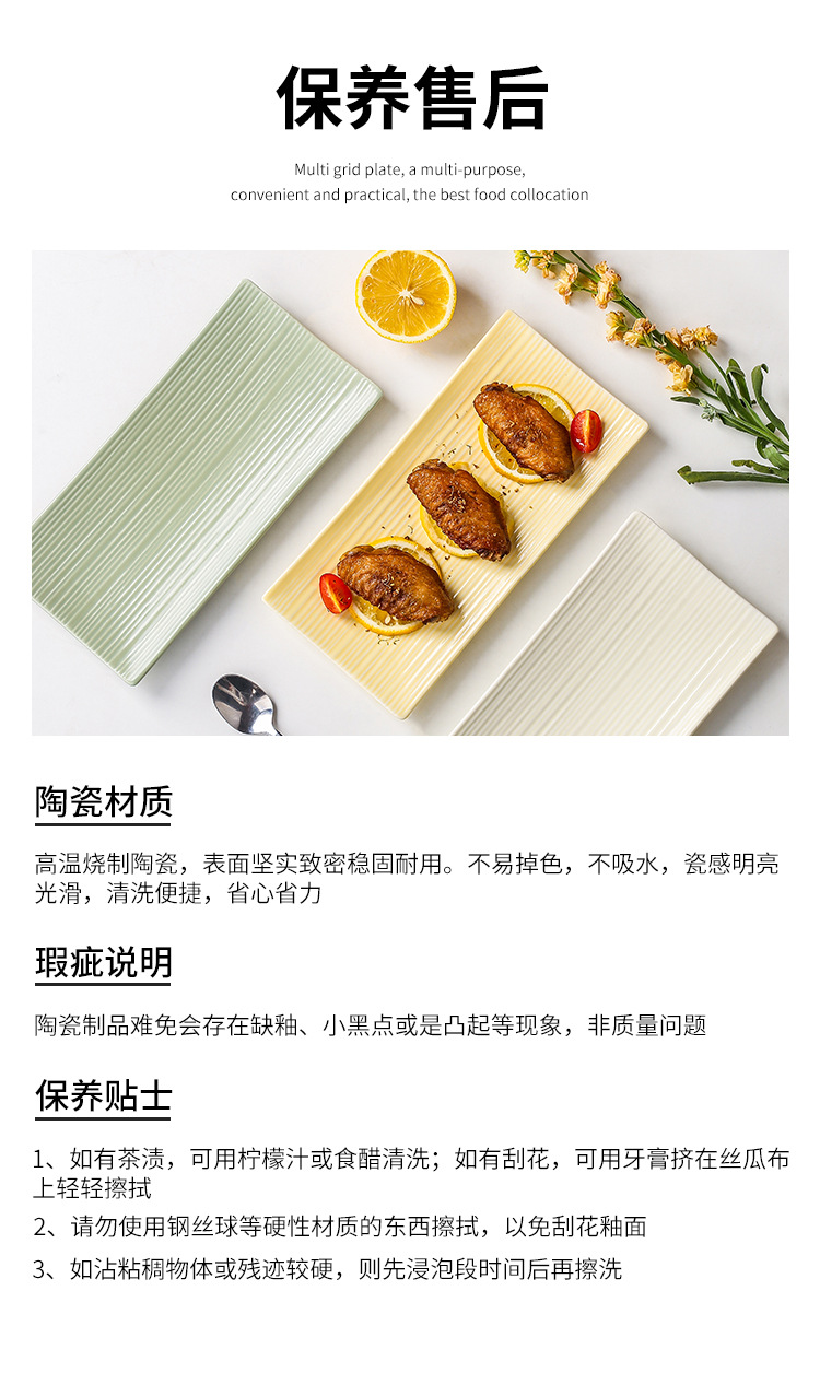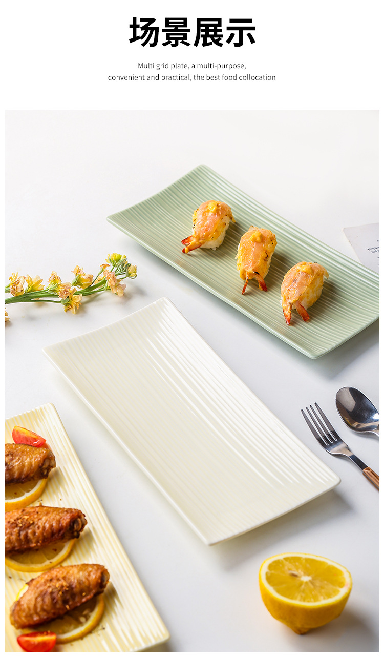 직사각형 초밥 접시 가정용 세라믹 평면 접시 창조적 인 저녁 식사 접시 북유럽 간단한 레스토랑 접시 서양 음식 접시