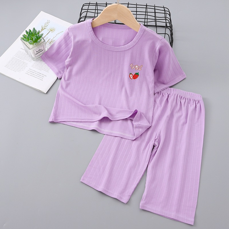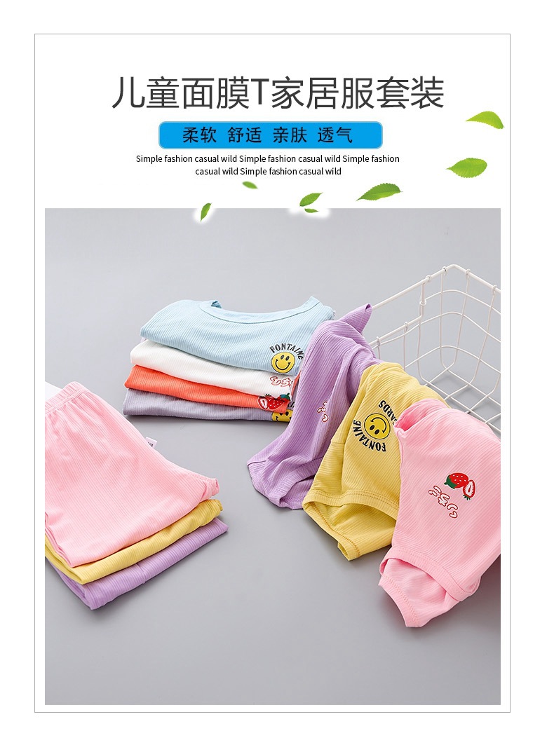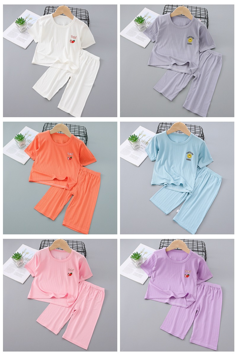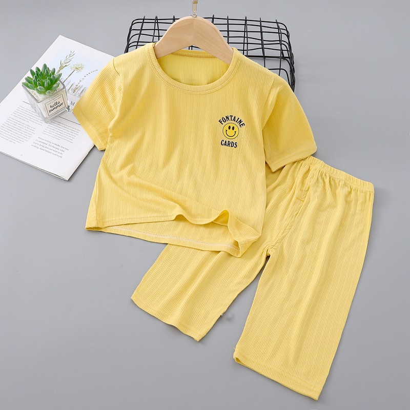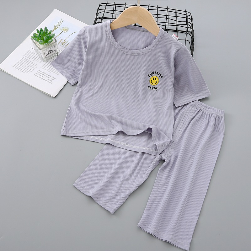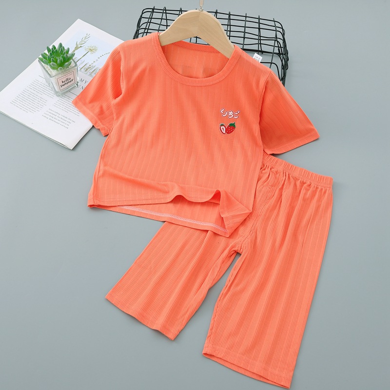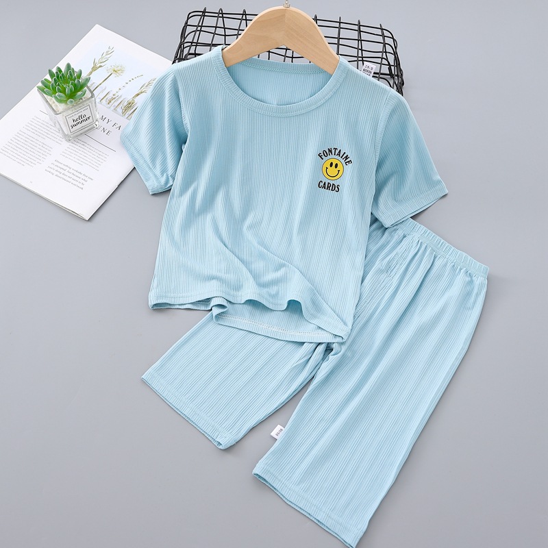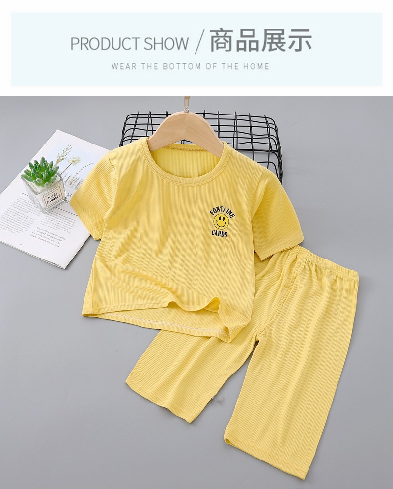 어린이 가정복 여름 얇은 스타일 남녀 아동 잠옷 세트 중대형 아동용 7부 소매 에어컨 옷 통기성 좋고 편안함스토어 가기