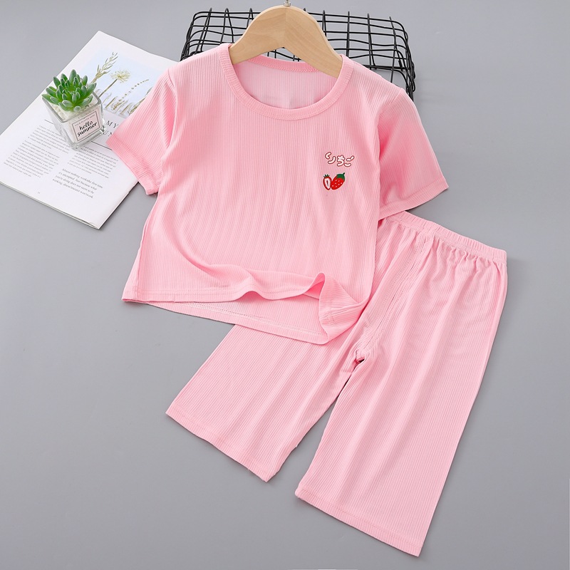 어린이 가정복 여름 얇은 스타일 남녀 아동 잠옷 세트 중대형 아동용 7부 소매 에어컨 옷 통기성 좋고 편안함