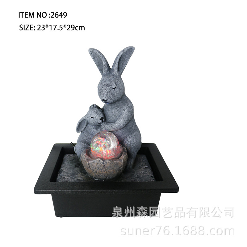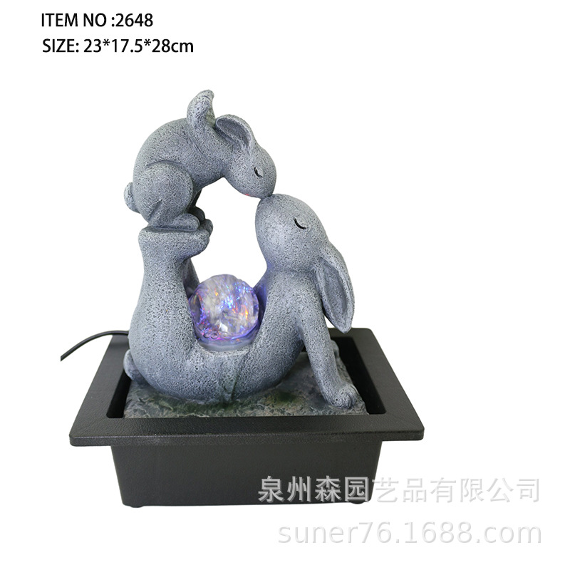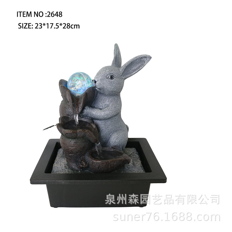 창조적 인 새로운 시뮬레이션 귀여운 토끼 분수 물 장식 실내 데스크탑 사무실 입구 창 장식