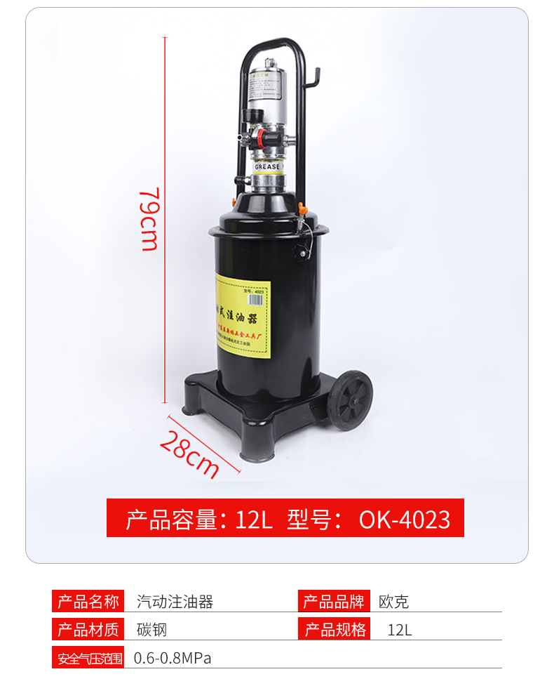 공장 도매 공압 오일러 편리한 고압 12L 자동 버터 충전기 대형 유리
