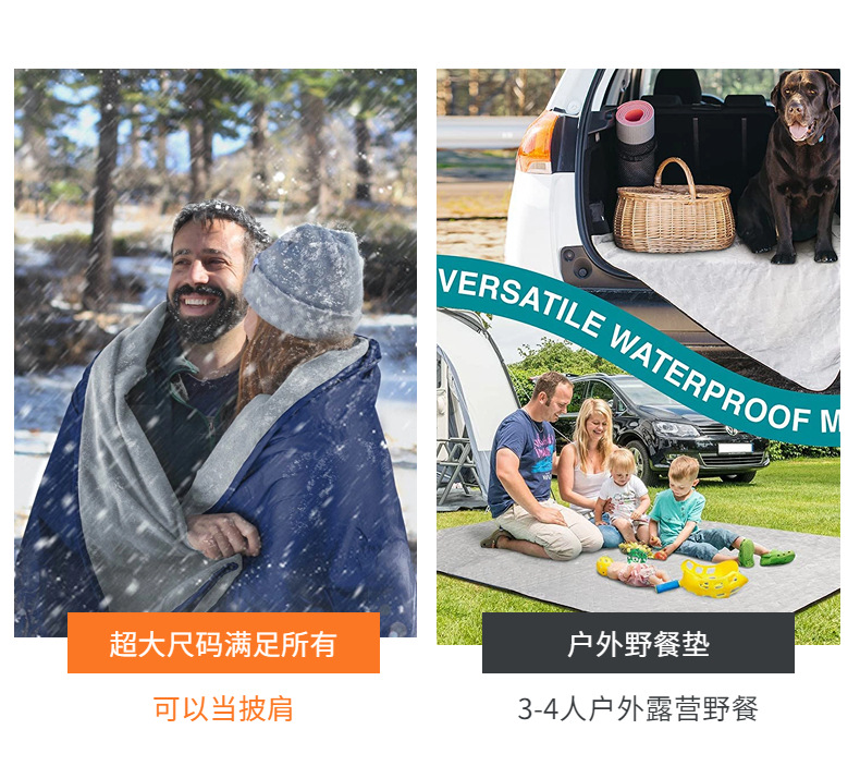 폴라 플리스 피크닉 매트, 휴대용 야외 캠핑 담요, 확대되고 두꺼워진 방습 매트, 다기능 여행용 담요, 방수 바닥 매트