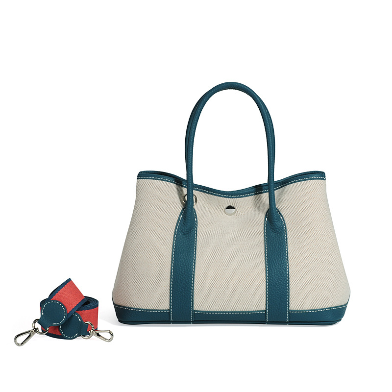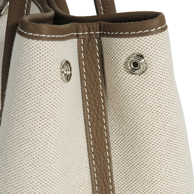 대용량 가든 가방 캔버스 스티치 대비 가죽 탑 레이어 소가죽 핸드 숄더 쇼핑백 버킷 토트 백스토어 가기