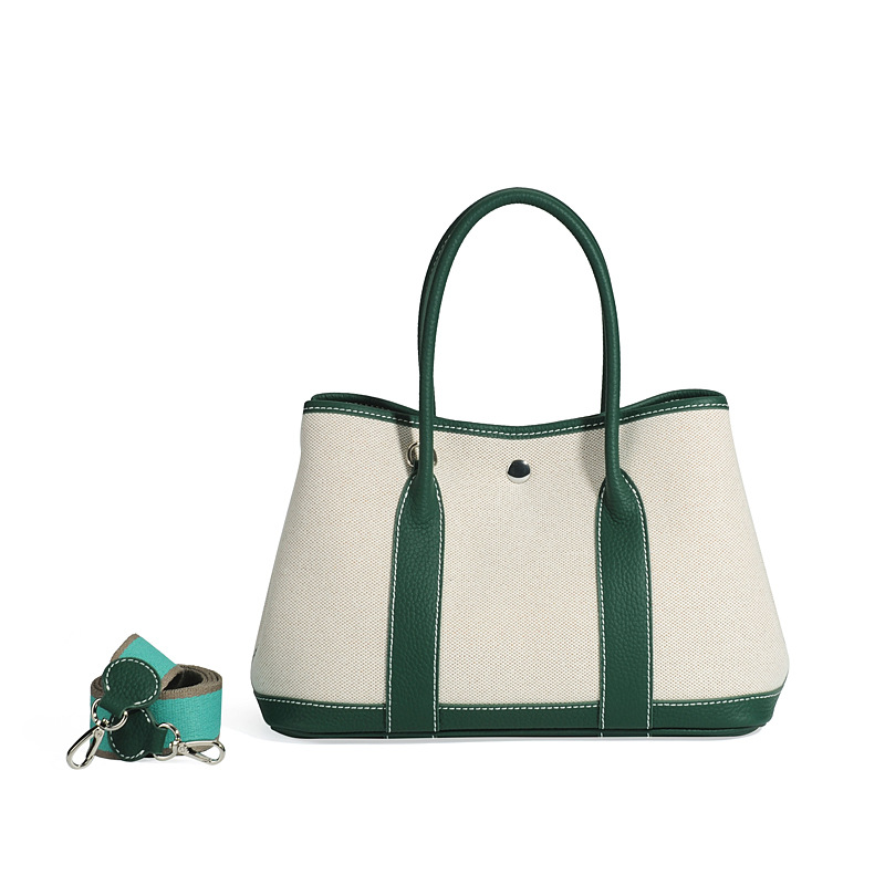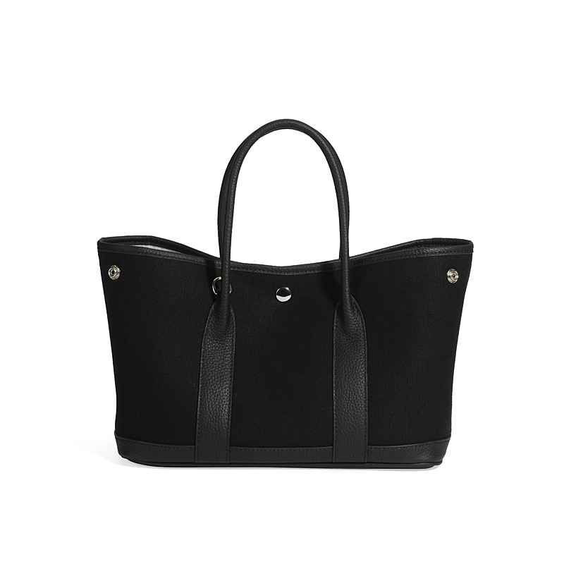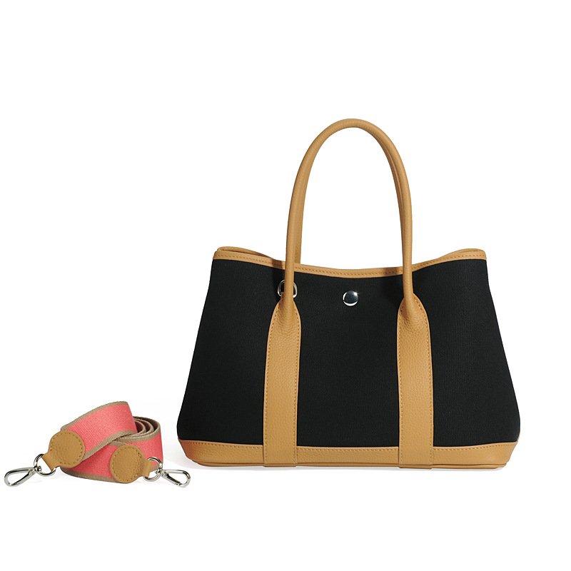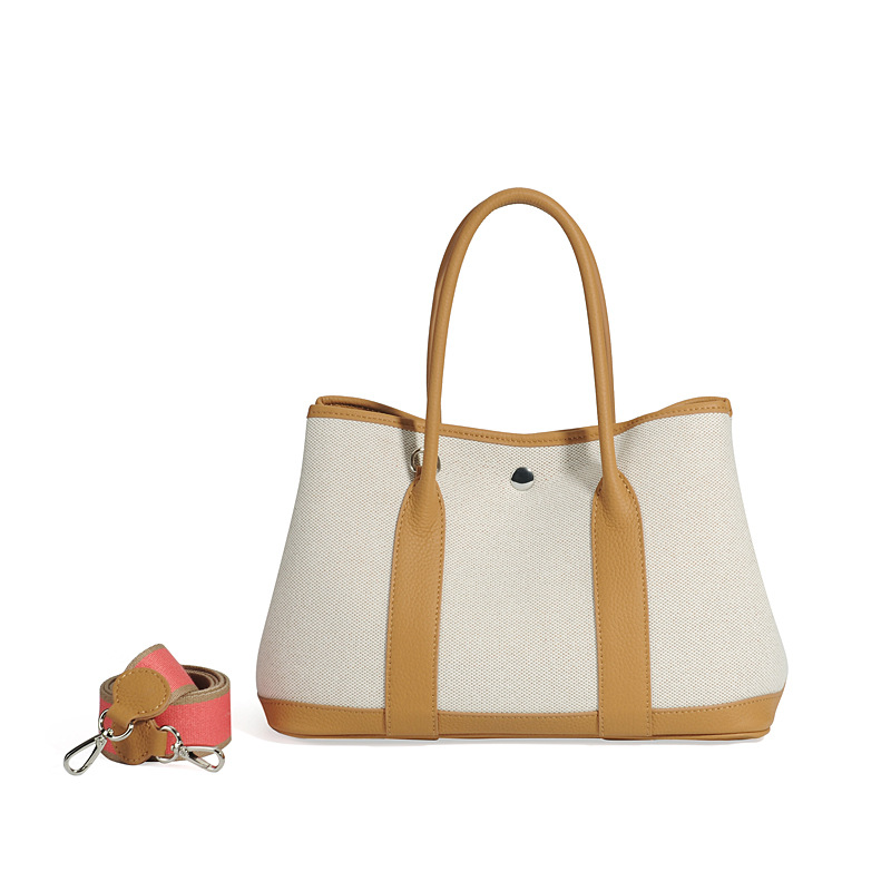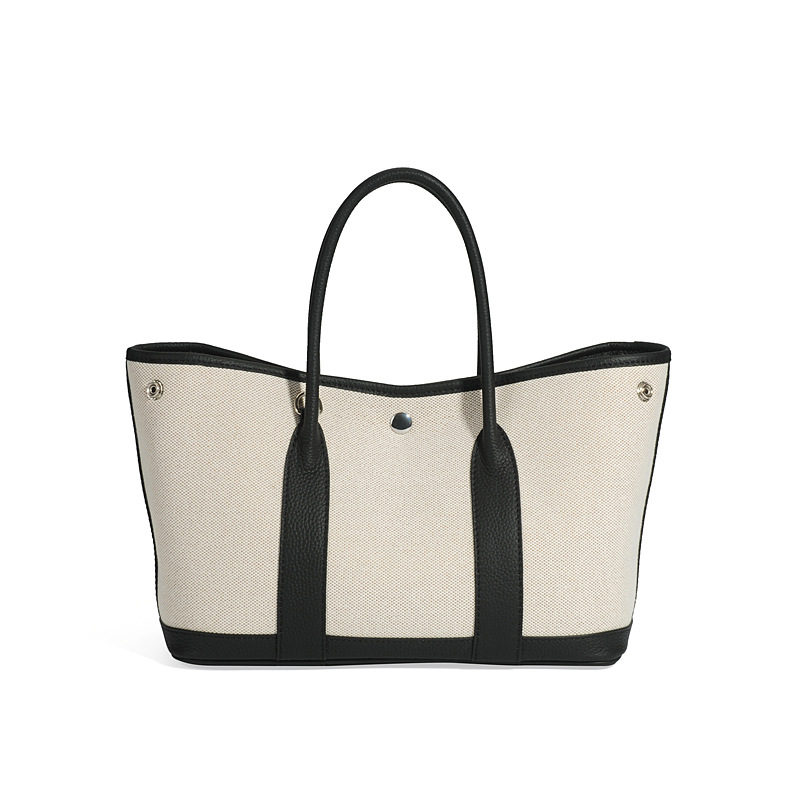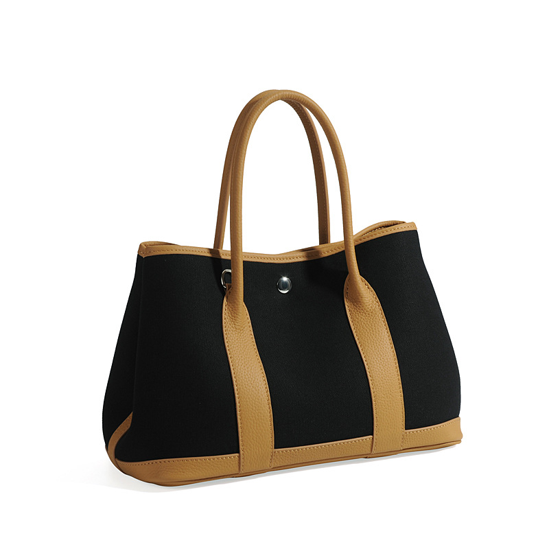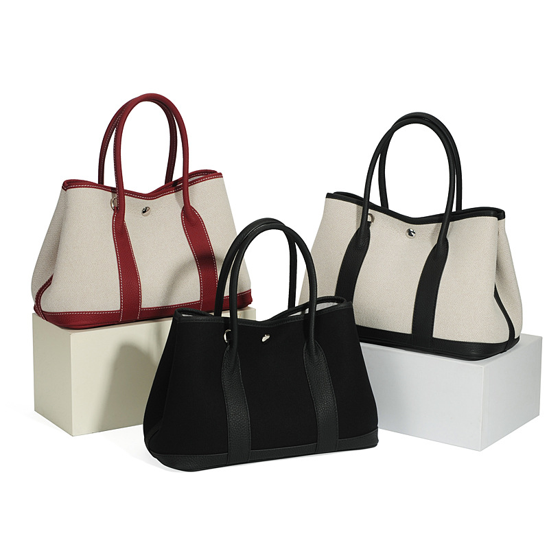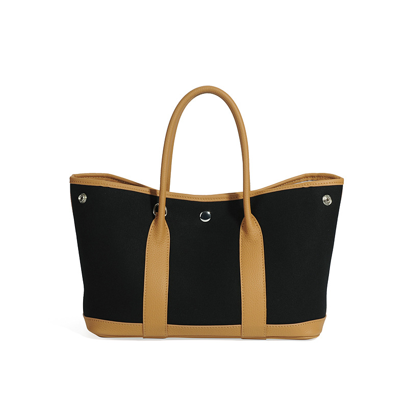 대용량 가든 가방 캔버스 스티치 대비 가죽 탑 레이어 소가죽 핸드 숄더 쇼핑백 버킷 토트 백