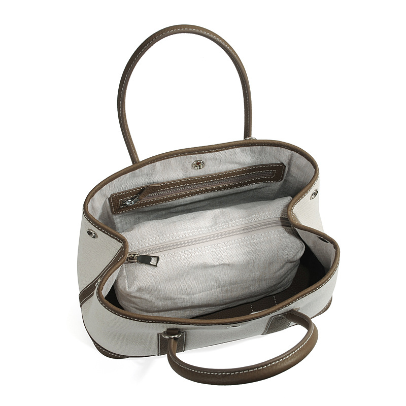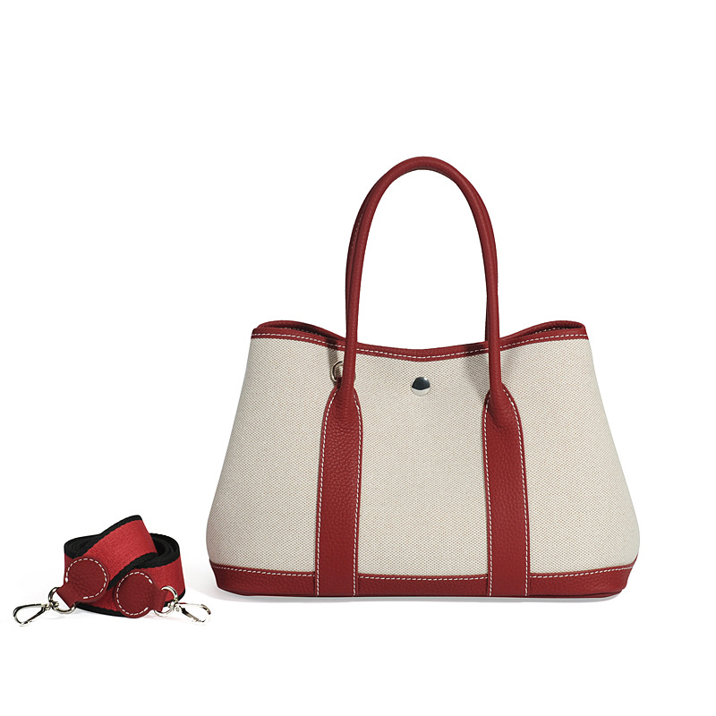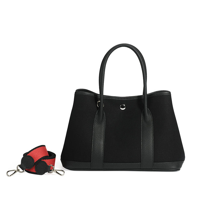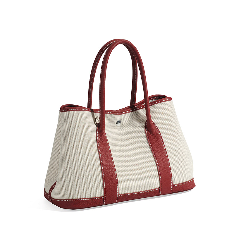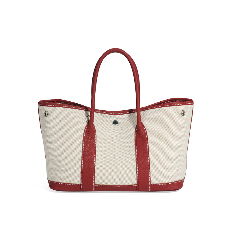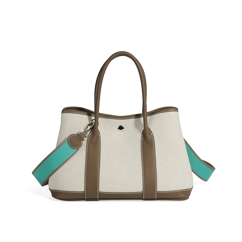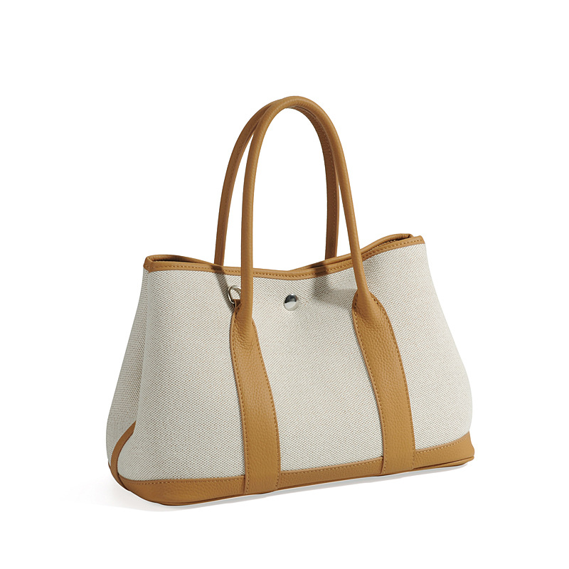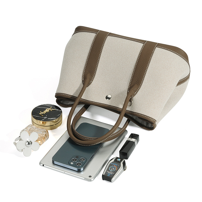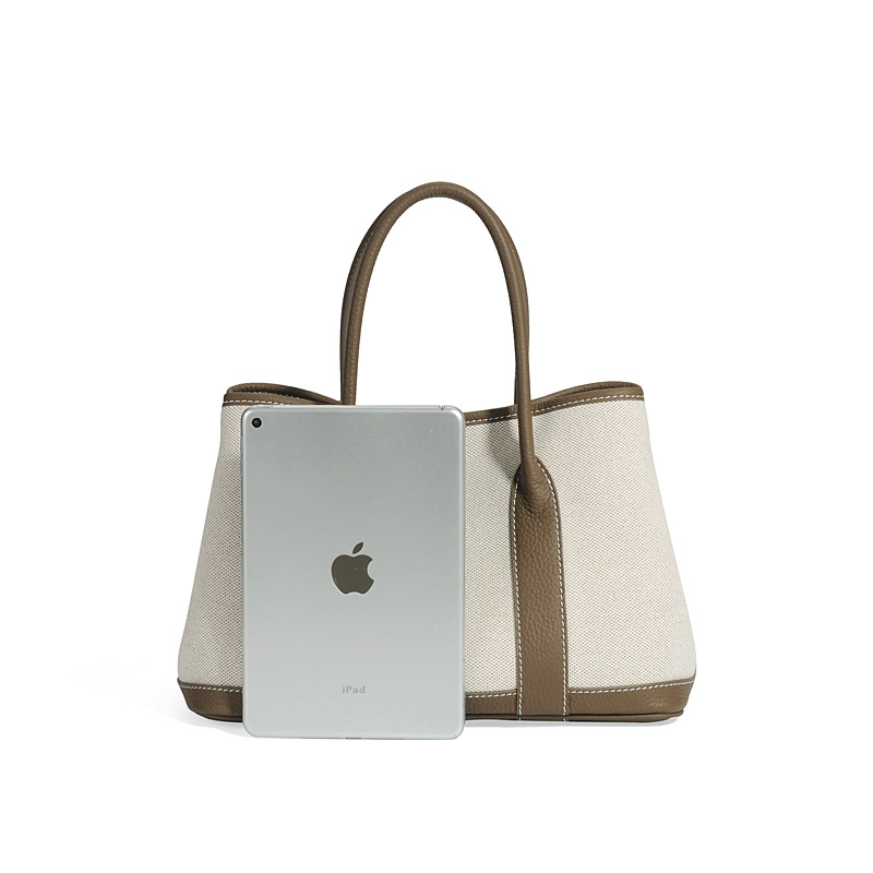 대용량 가든 가방 캔버스 스티치 대비 가죽 탑 레이어 소가죽 핸드 숄더 쇼핑백 버킷 토트 백