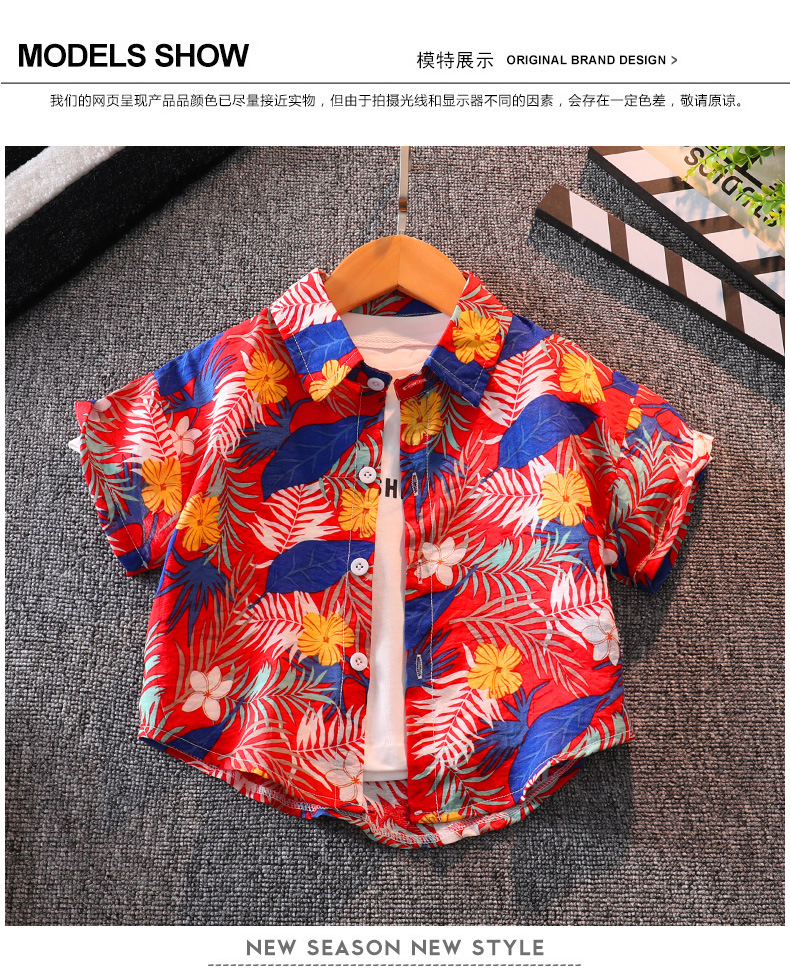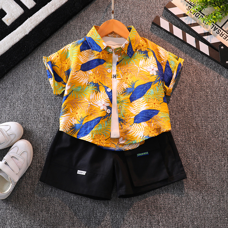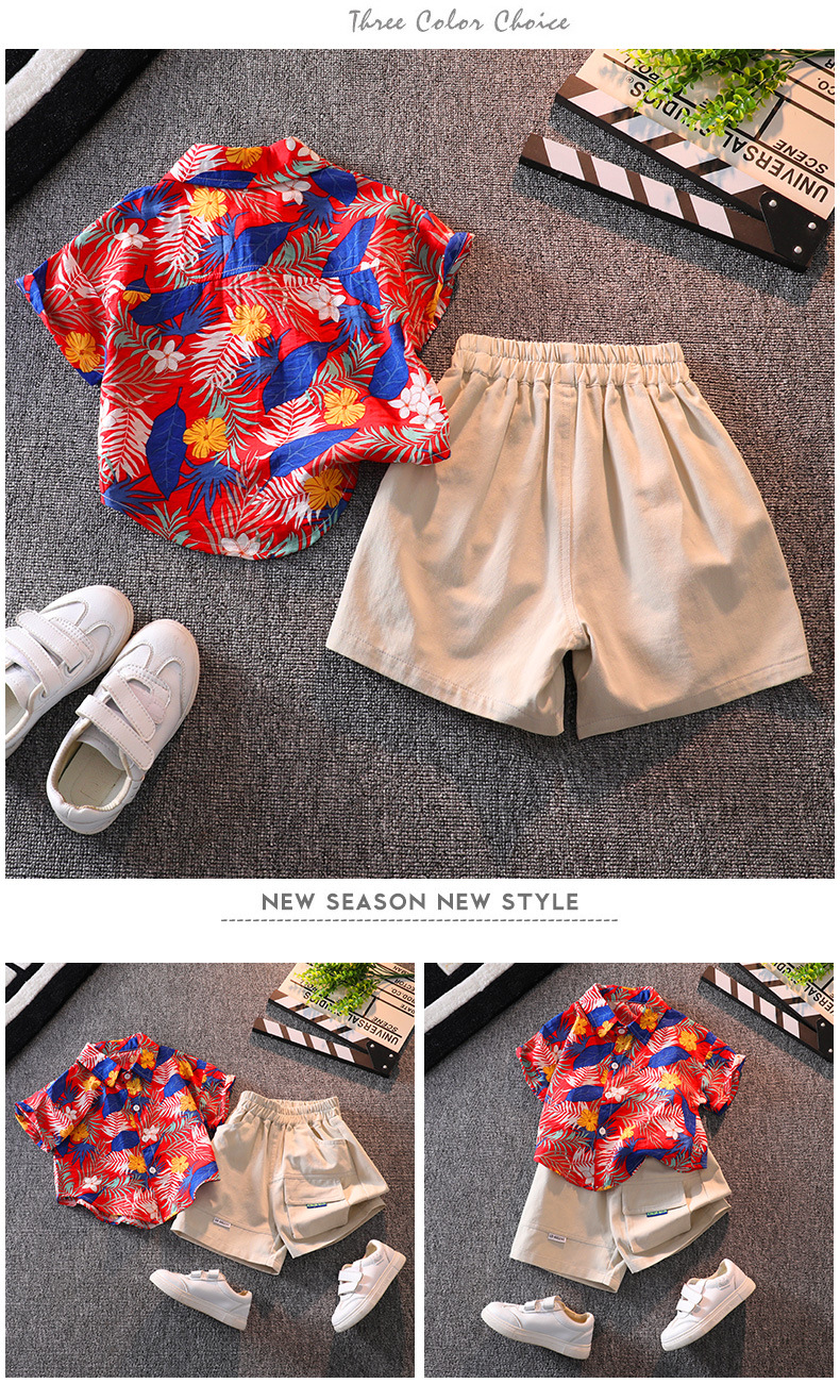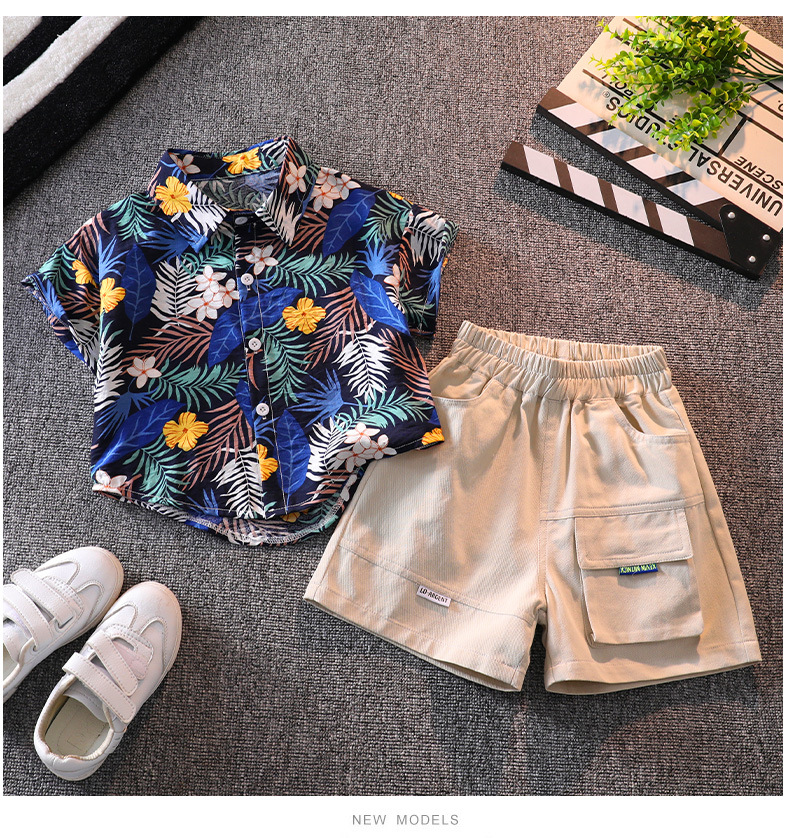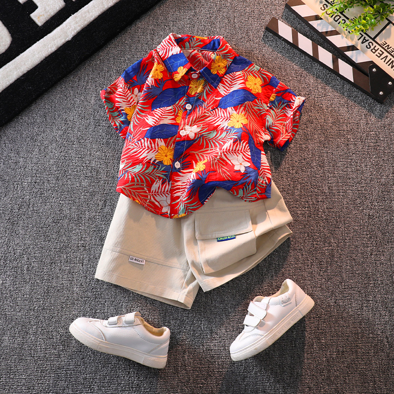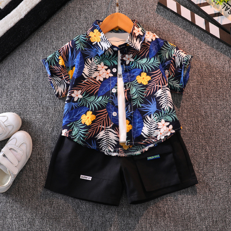 소년의 반팔 꽃 셔츠 해변 휴가 스타일 여름 아기의 반팔 탑 인터넷 인기 셔츠 어린이 반바지 세트스토어 가기
