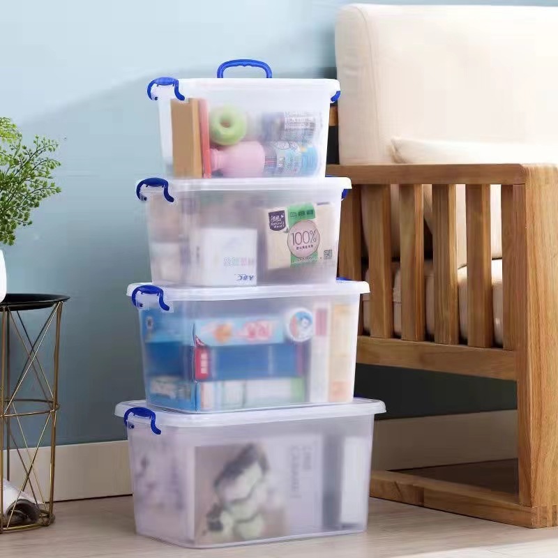 두꺼운 대형 보관함 투명 휴대용 보관함 뚜껑 인쇄 및 로고가있는 가정용 플라스틱 의류 약 상자