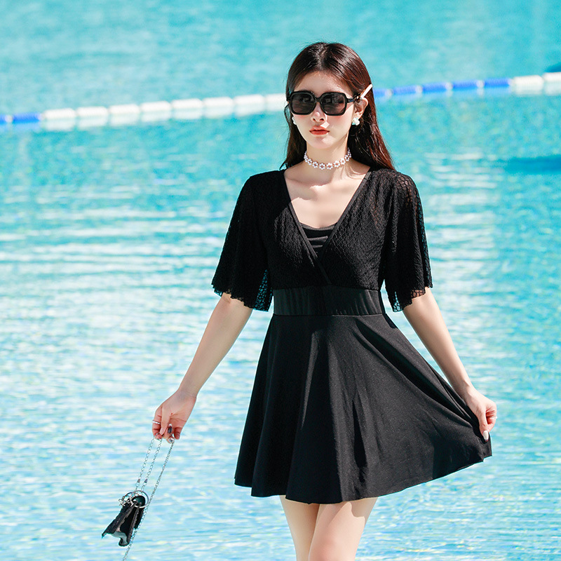 플러스 사이즈 수영복 도매, 살을 커버해 날씬해 보이는 한국형 원피스 스커트 스타일, 보수적인 사각팬티, 약간 뚱뚱한 소녀들을 위한 온천 수영복스토어 가기