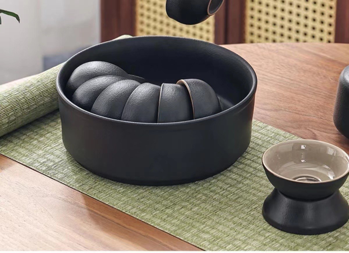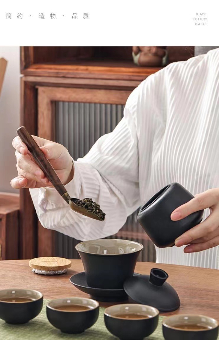 • 블랙 도자기 휴대용 냄비 여행 차 세트