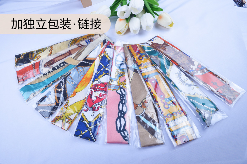 실크 스카프 도매 제조 업체 바인딩 가방 긴 작은 실크 스카프 포장 선물 상자 기념품 가방 실크 스카프 장식 리본 실크 스카프스토어 가기