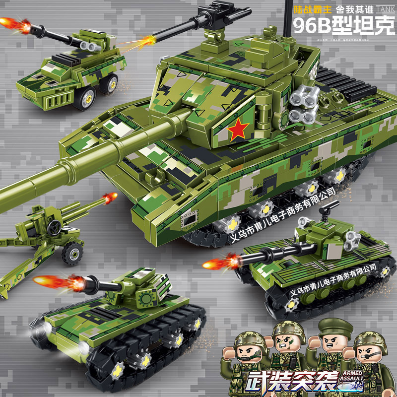 Kuyu 모델 7038 무장 습격 96B 탱크 어린이 퍼즐 빌딩 블록 조립 군사 소년 장난감스토어 가기