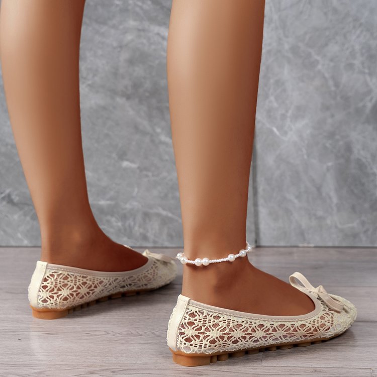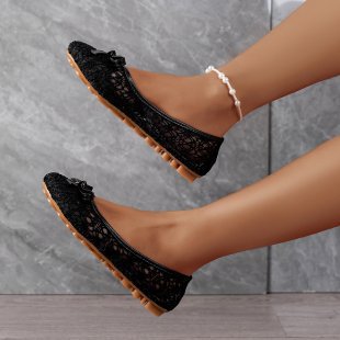 2025 봄 레이스 메쉬 통기성 신발 여성 플랫 힐 리본 플랫 슈즈 얕은 입구 대형 여성 신발스토어 가기