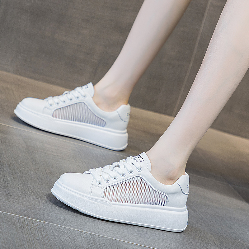 인터넷 연예인 한국 흰색 신발 여성 2025 새로운 여름 통기성 메쉬 신발 다목적 스포츠 흰색 캐주얼 운동화 트렌드
