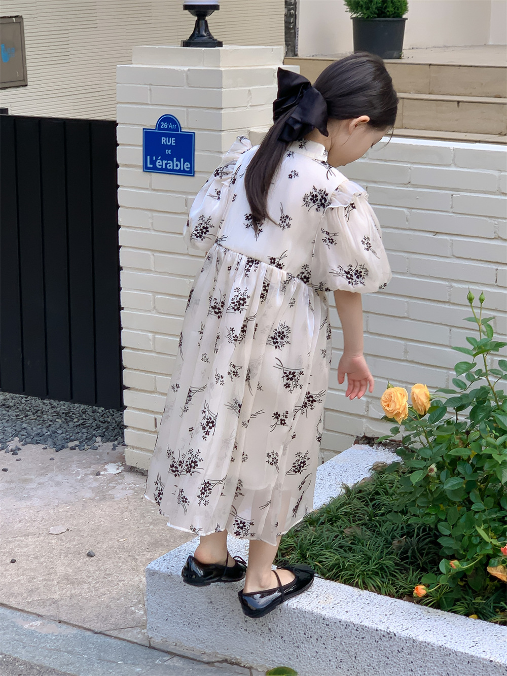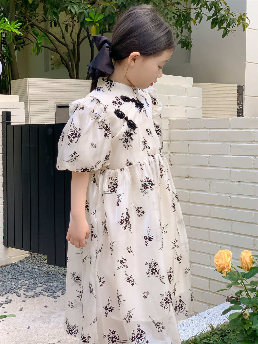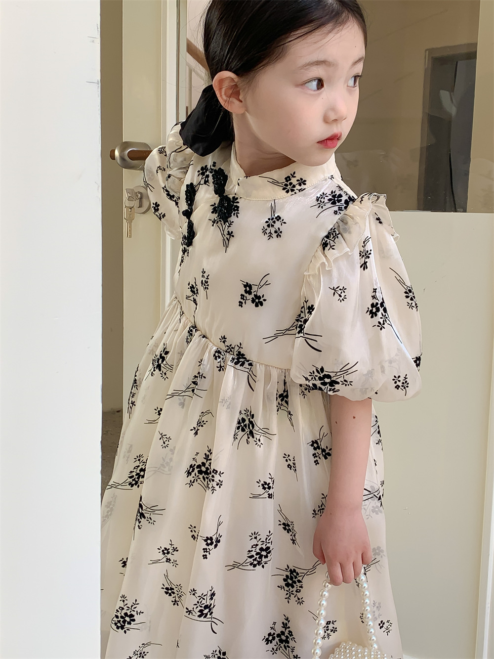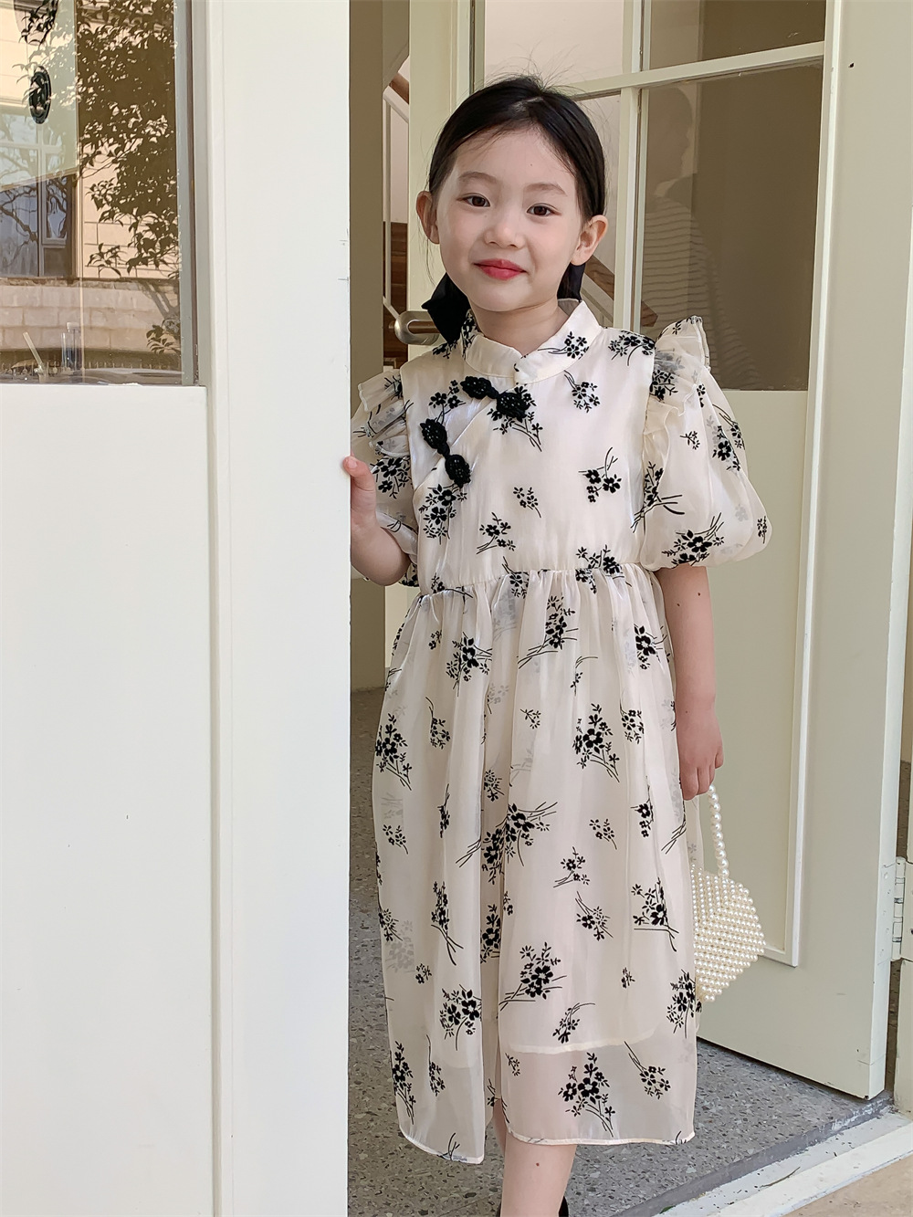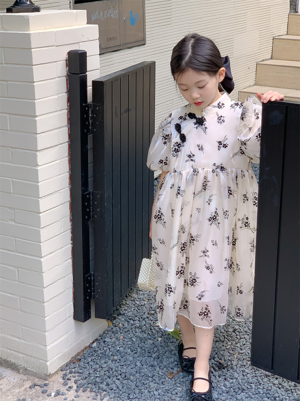 한국 스타일 아동복 2023 여름 신상품 여아 내셔널 스타일 드레스 패션 여아 플라워 메쉬 드레스 트렌디스토어 가기