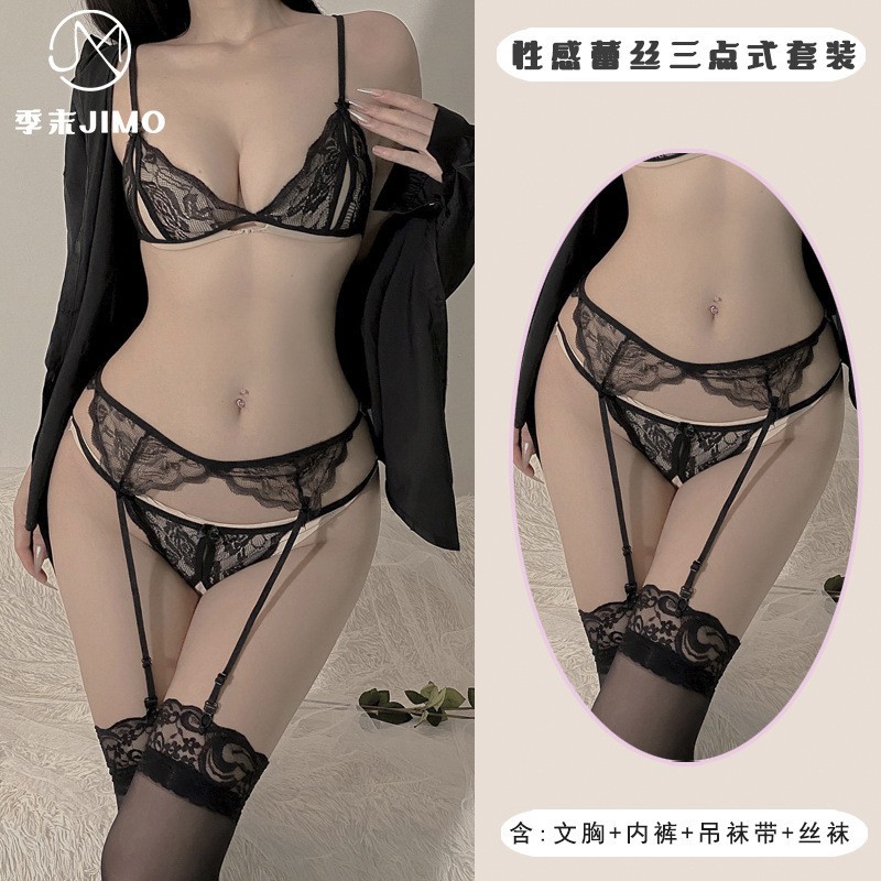 • 블랙 브라 + 속옷 + 가터 + 스타킹