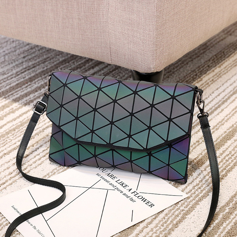 여성용 가방 2025 새로운 기하학 마름모 어깨 크로스 바디 백 일본과 한국 트렌드 빛나는 색상 변경 봉투 가방 클러치 백