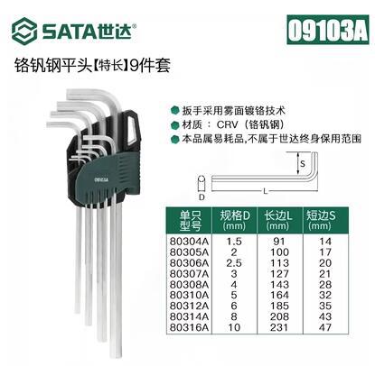 • 9개 크롬 바나듐 강철 특수 길이 플랫 헤드 09103A