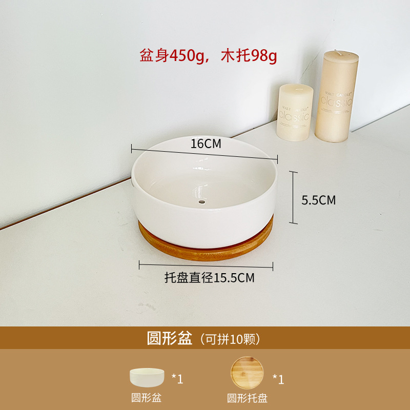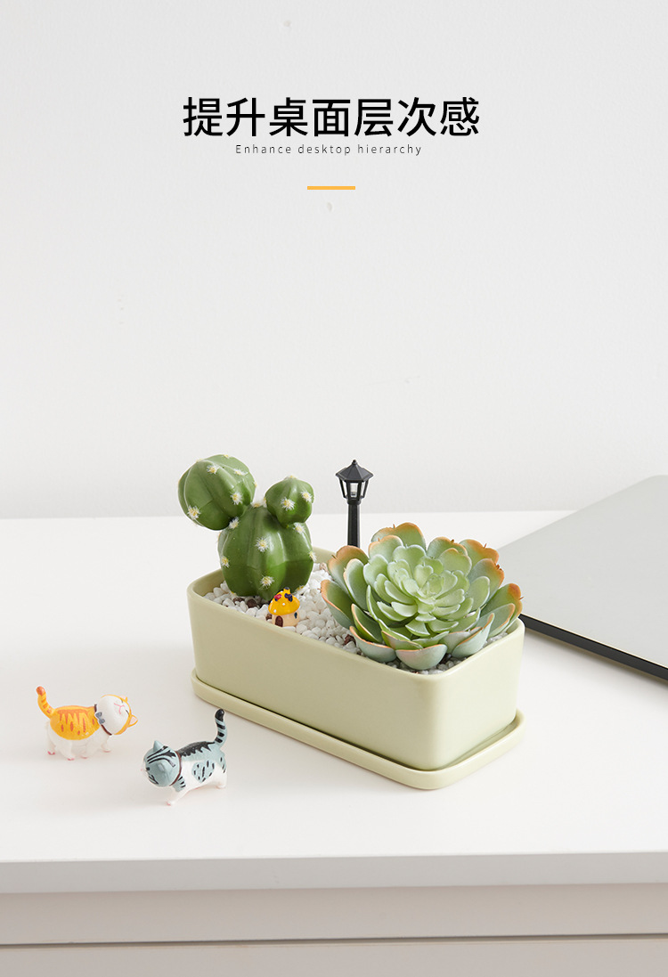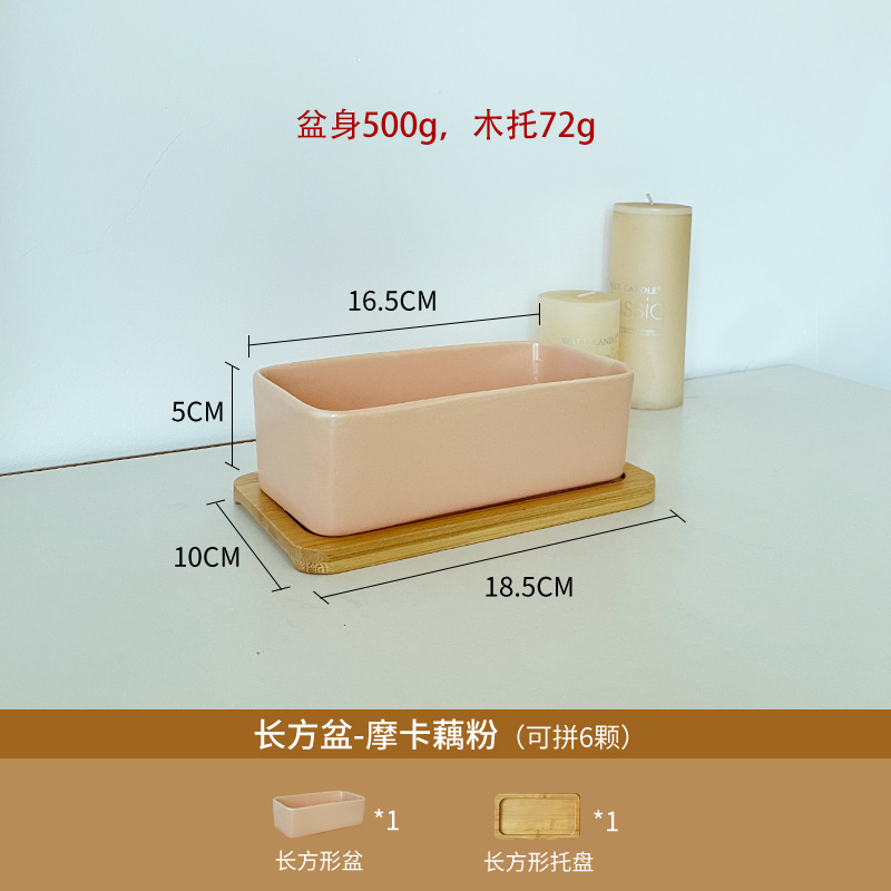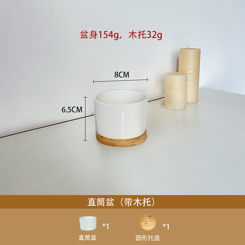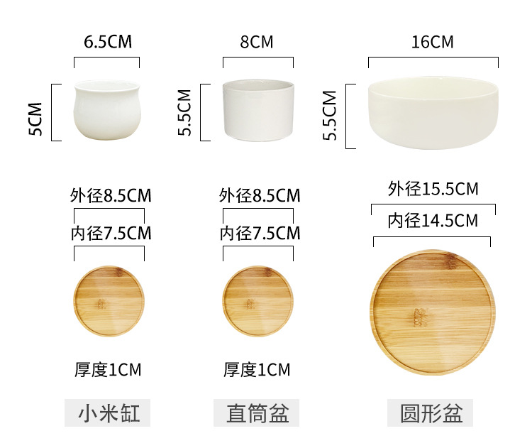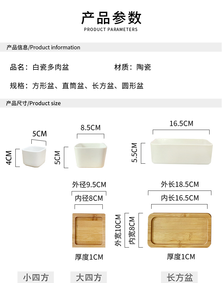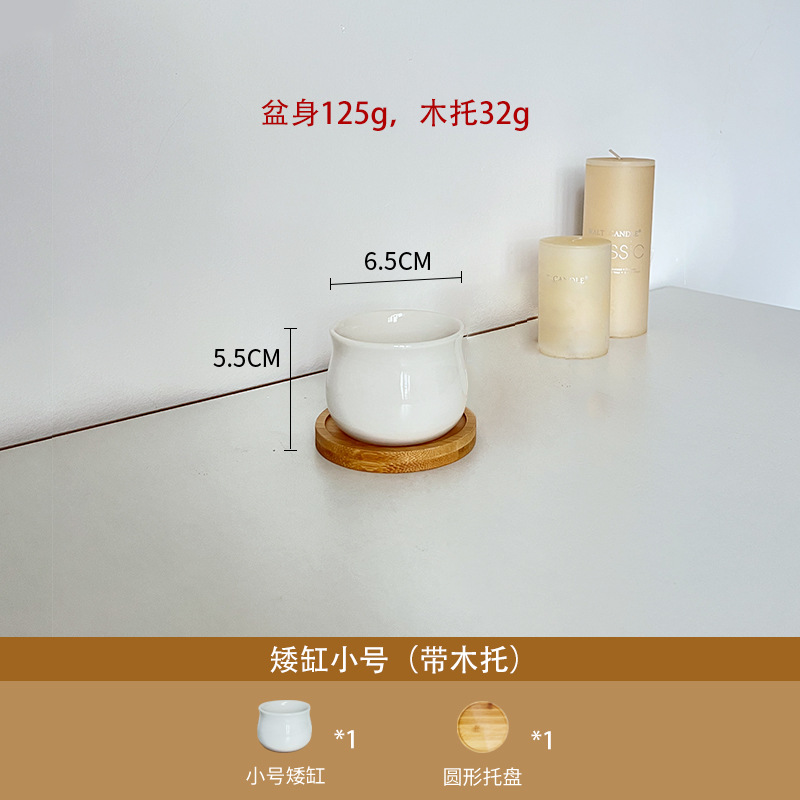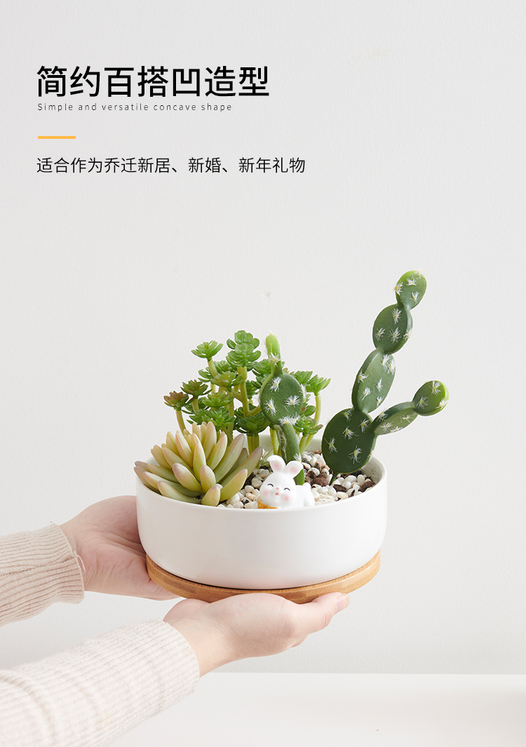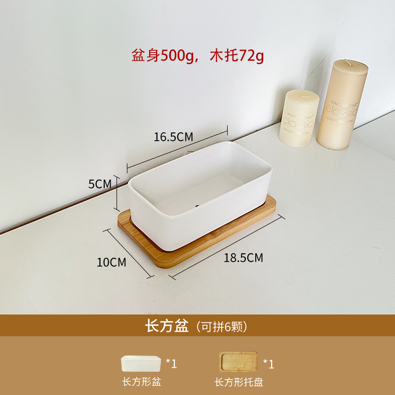 아마존 인기 판매 화이트 다육식물 화분 세라믹 나무 받침대 포함 미니 직사각형 원형 백자 특수 소형 화분 도매