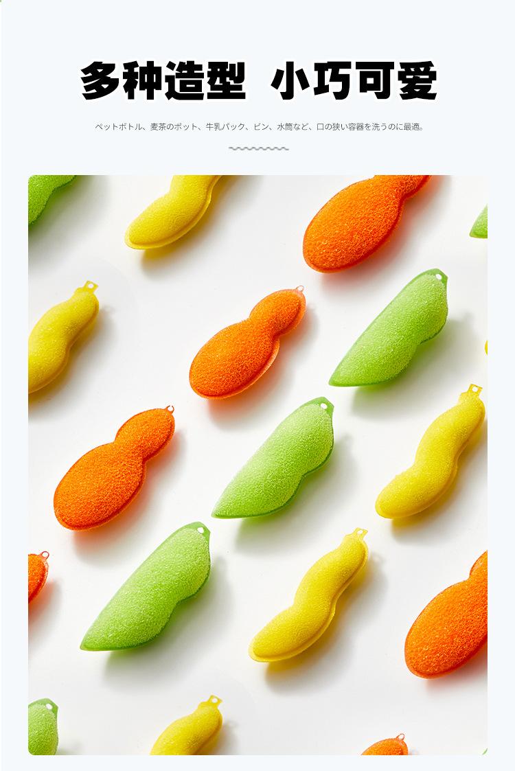 일본 이마카라 작은 병 입 청소 완두콩 청소 유리 병 우유 병 매직 스폰지 닦아 3 개