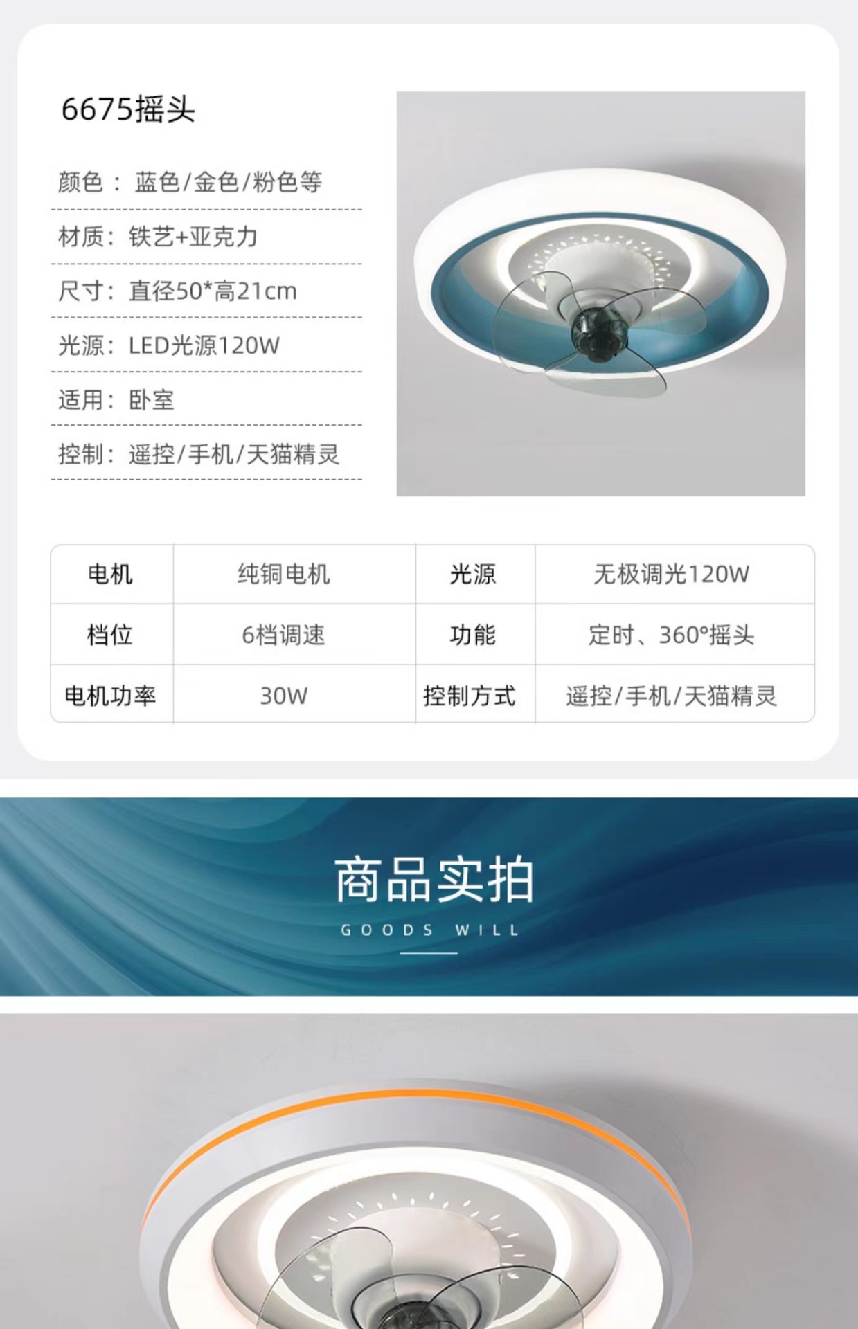 지능형 침실 침묵 팬 라이트 2023 새로운 360 이동 헤드 침실 통합 팬 라이트 룸 천장 조명