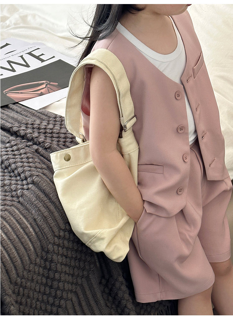 어린이 조끼 세트 2025 소녀의 새로운 한국어 스타일 정장 아동 의류 조끼 반바지 2 피스 세트 드롭 배송