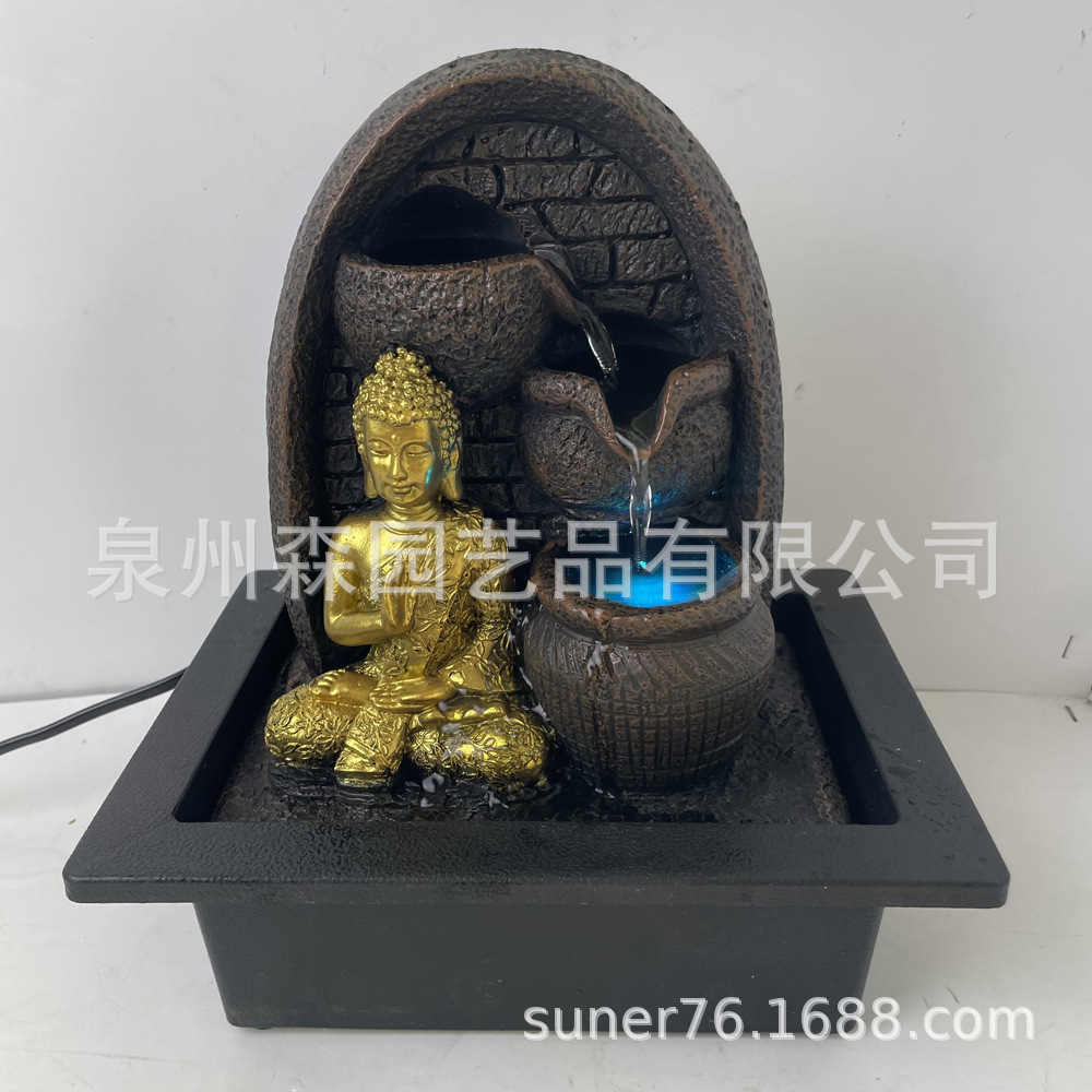 국경 수지 공예 불상 분수 물 장식 선 실내 데스크탑 사무실 와인 캐비닛 물 풍경 장식스토어 가기