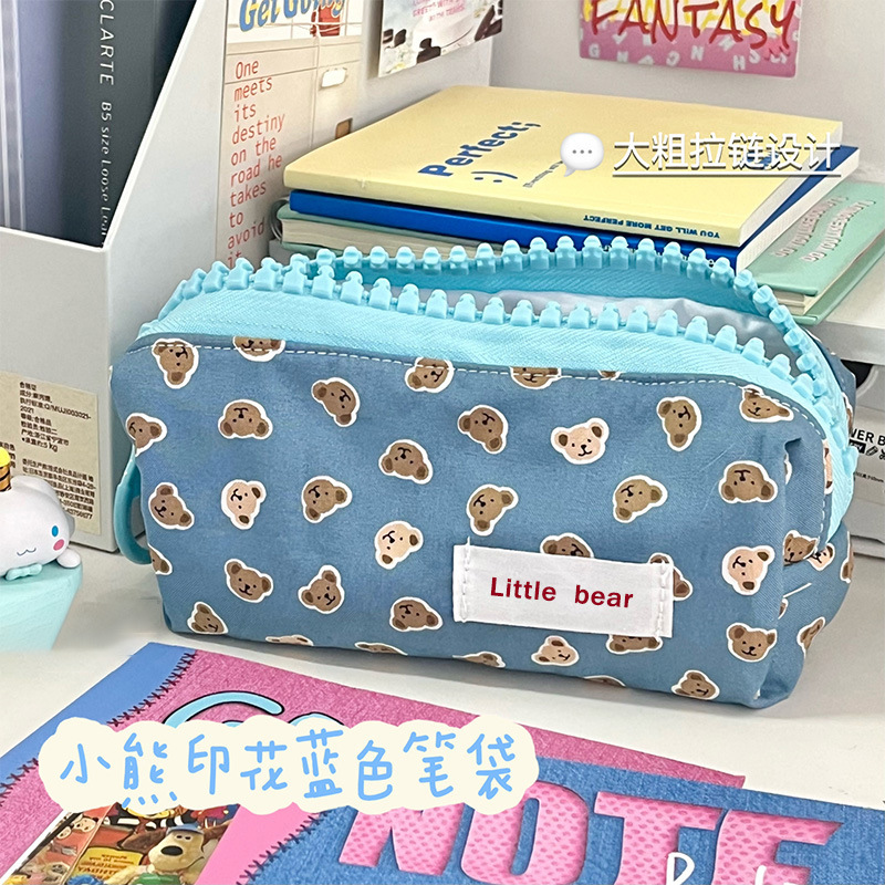 일본식 Ins 대용량 귀여운 곰 큰 지퍼 더러운 저항하는 학생 문구 보관 연필 케이스 문구 상자 문구 가방스토어 가기