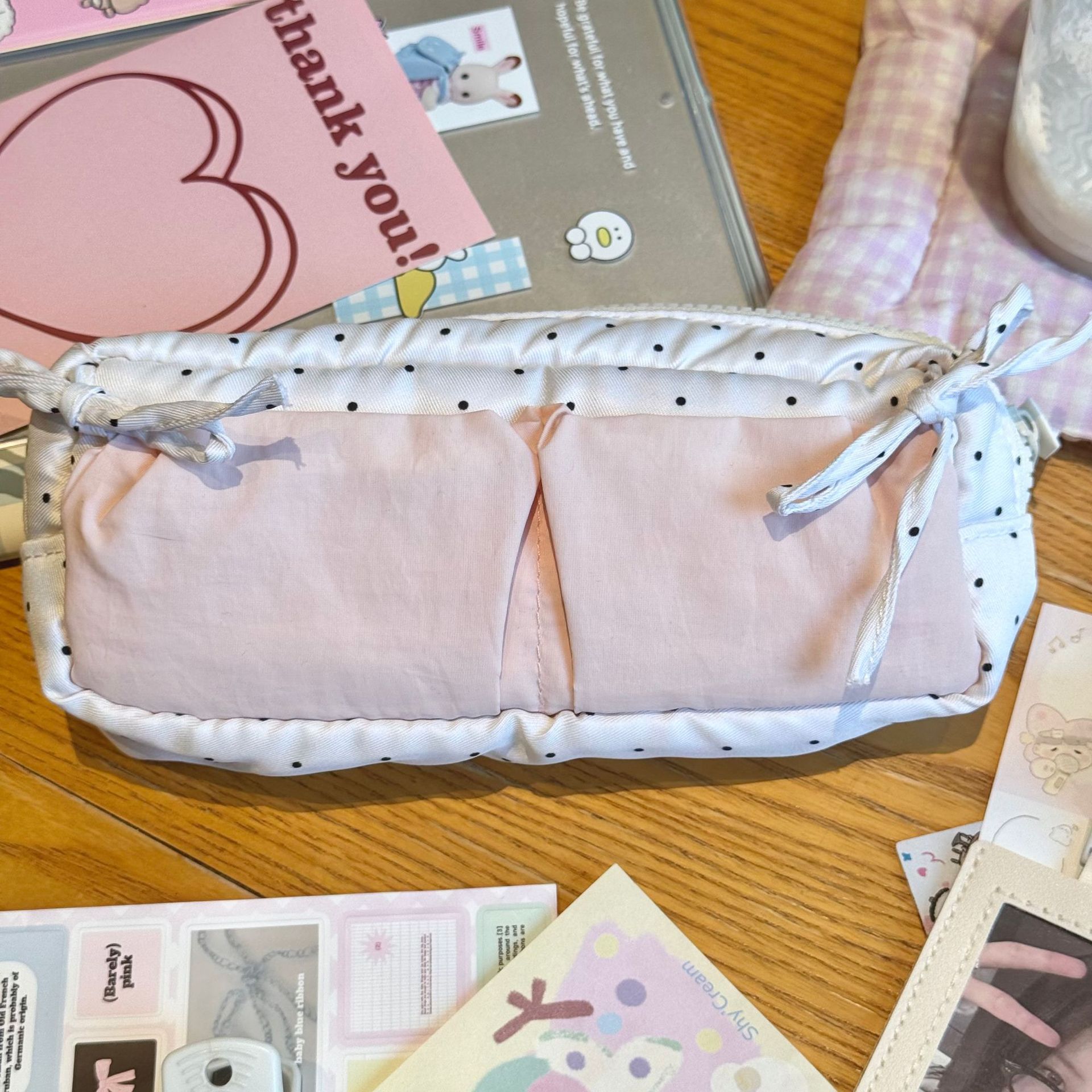 • 【ˊ더블 리본 ♡ 폴카 도트 핑크 필통]