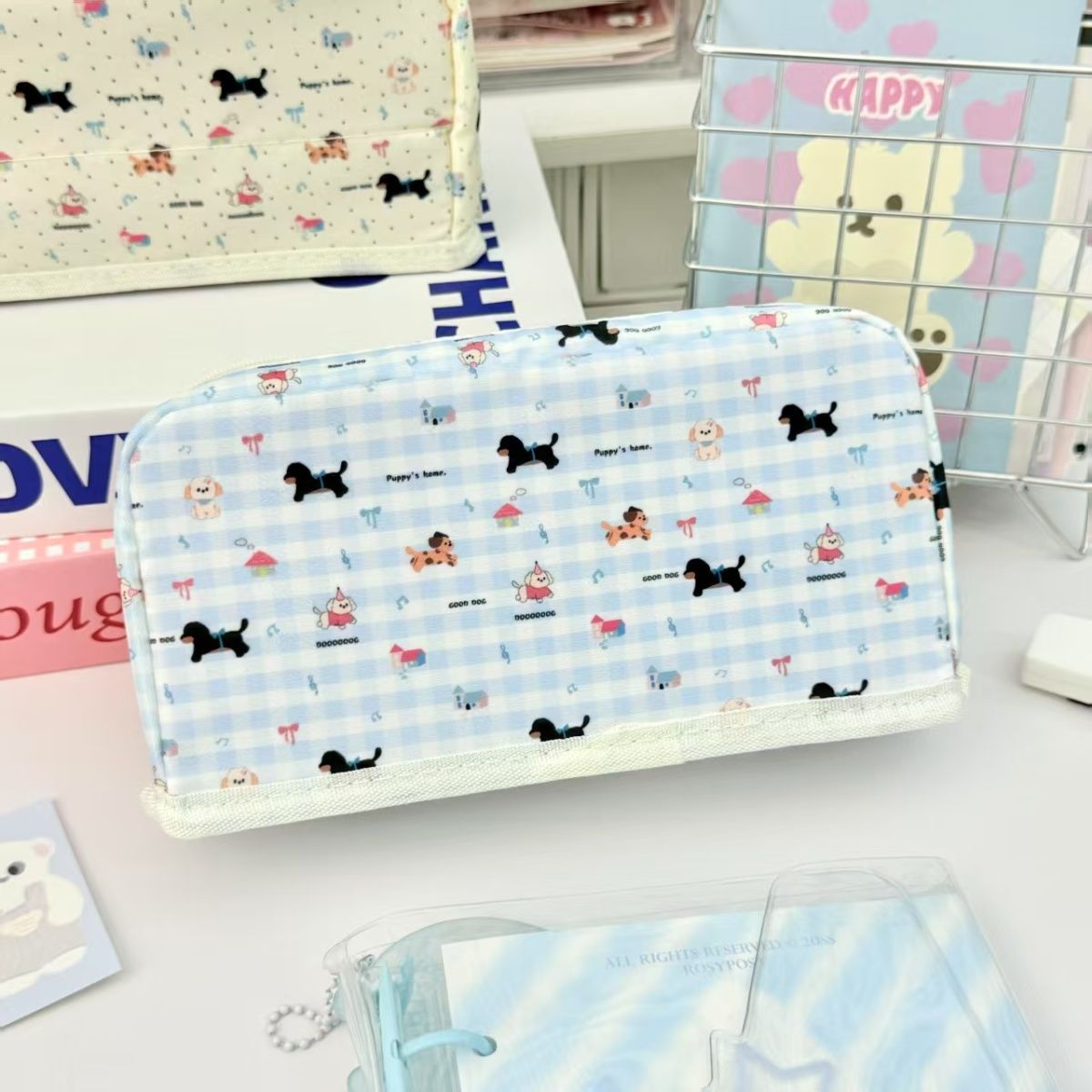 • [블루] 체크무늬 '닥스훈트 강아지' 접이식 필통