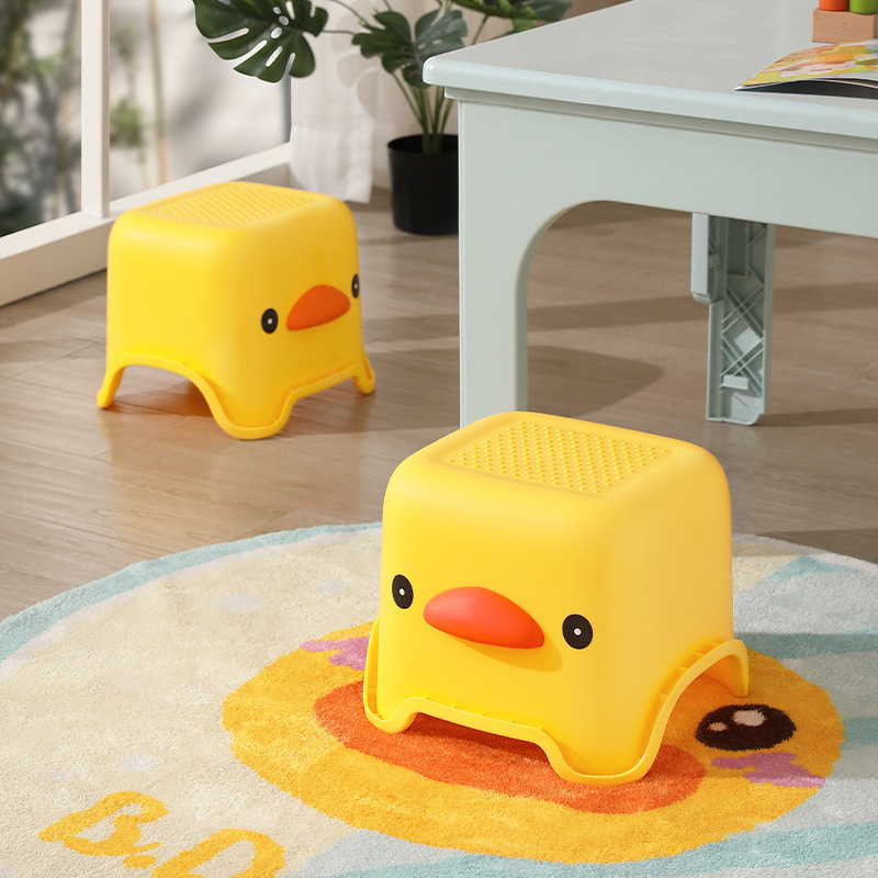작은 의자 가정용 거실 플라스틱 두꺼운 낮은 의자 만화 크리 에이 티브 노란 오리 간단한 휴대용 어린이 의자 보관 의자