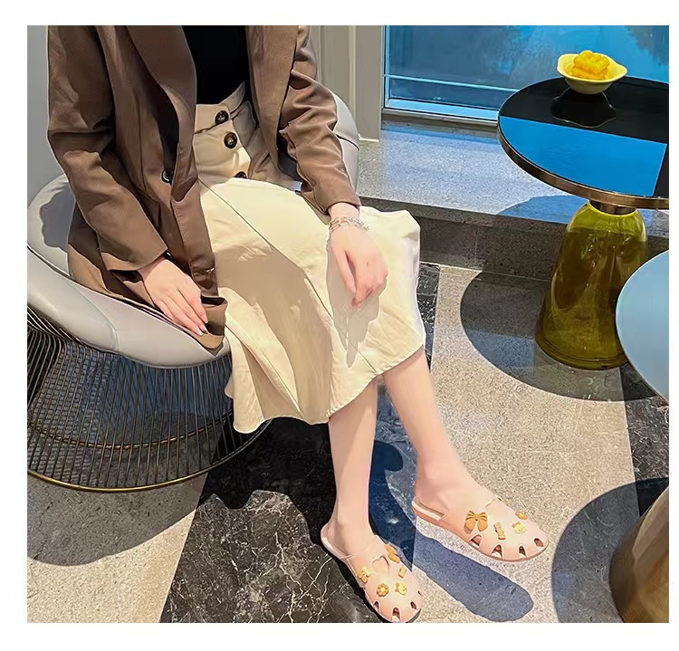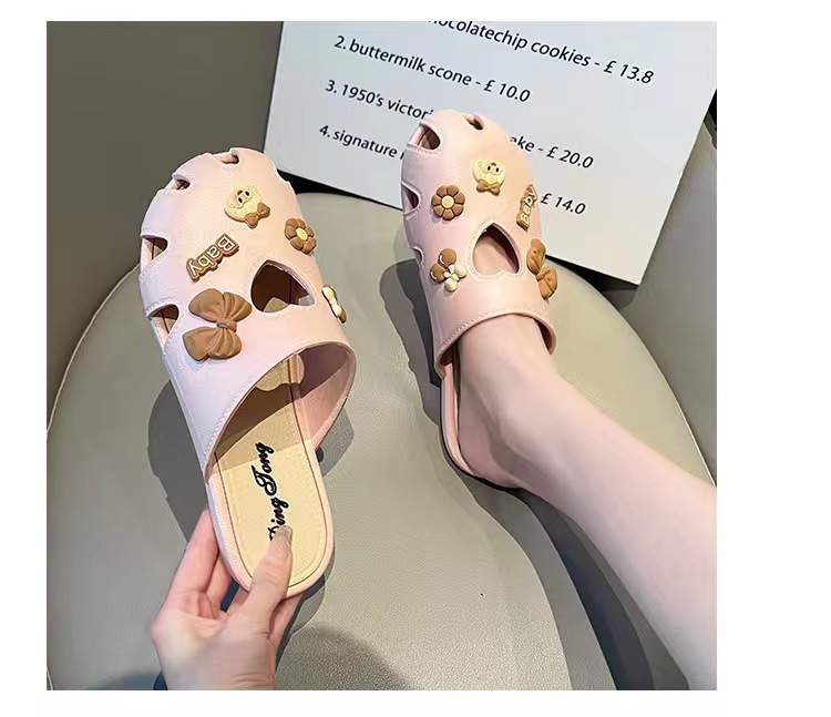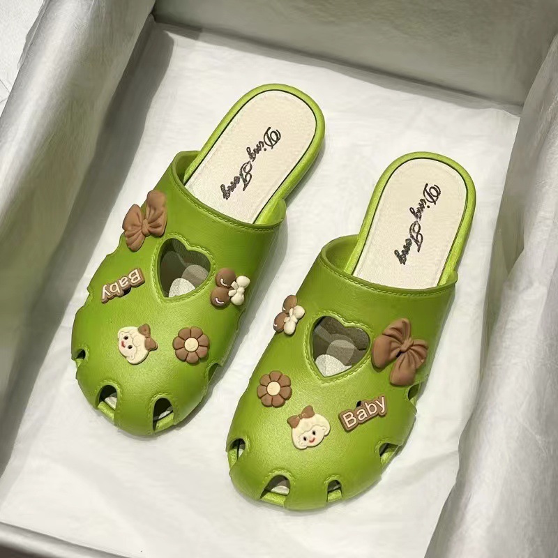 하프 팩 슬리퍼 여성용 여름 겉옷 한국식 패션 충돌 방지 홈 미끄럼 방지 부드러운 바닥 학생 만화 게으른 반 슬리퍼