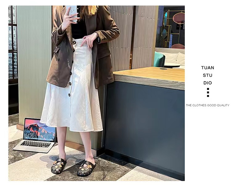 하프 팩 슬리퍼 여성용 여름 겉옷 한국식 패션 충돌 방지 홈 미끄럼 방지 부드러운 바닥 학생 만화 게으른 반 슬리퍼스토어 가기