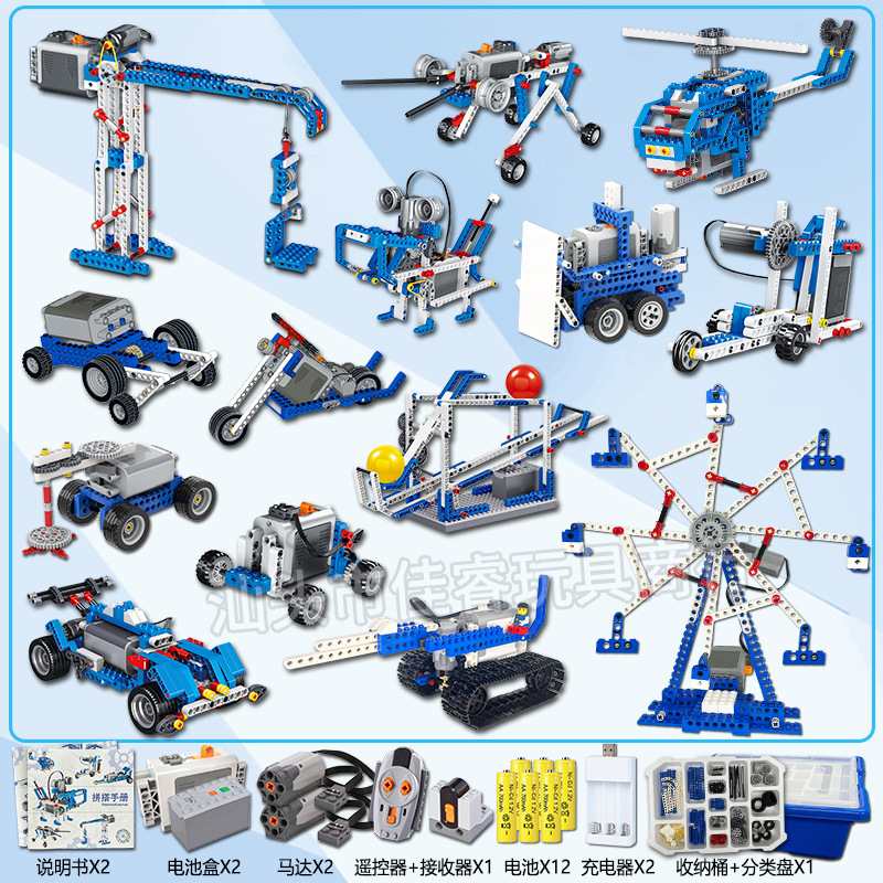 • 1단계 및 2단계 교구 [1488 입자] 모터 2세트 + 프로그래밍 원격 제어 버전 + 충전식 배터리 12개