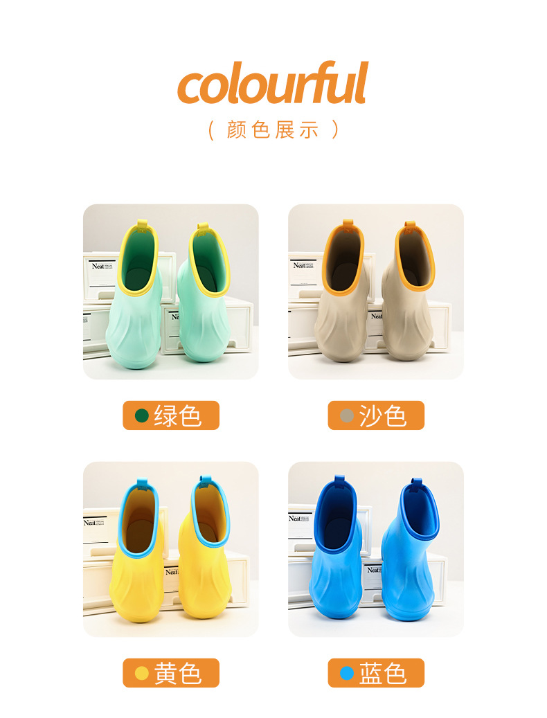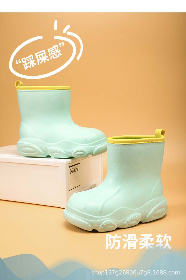 어린이 장화 도매 새로운 미끄럼 방지 부드러운 바닥 어린이 학생 물 신발 EVA 가벼운 소년 소녀 아기 장화스토어 가기