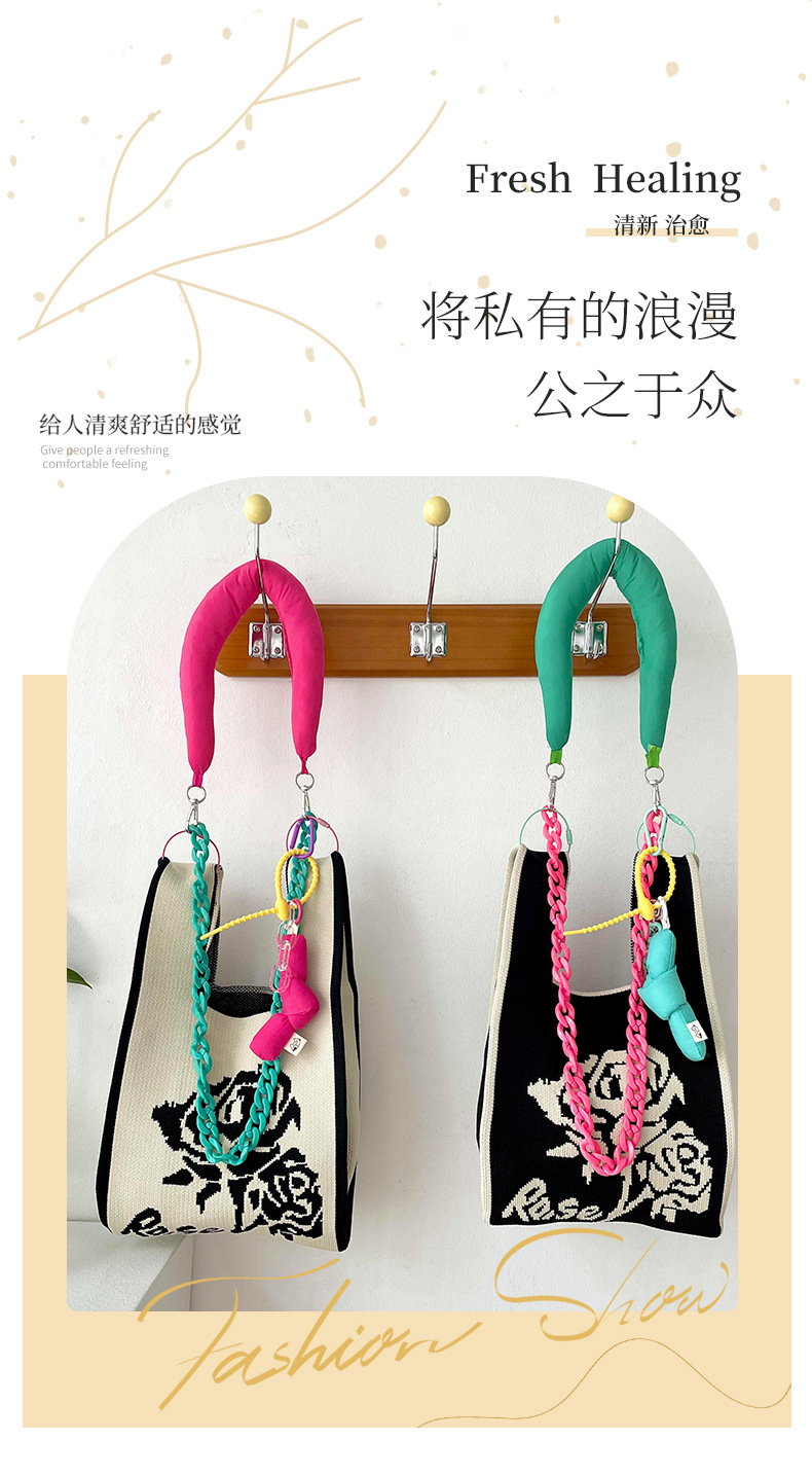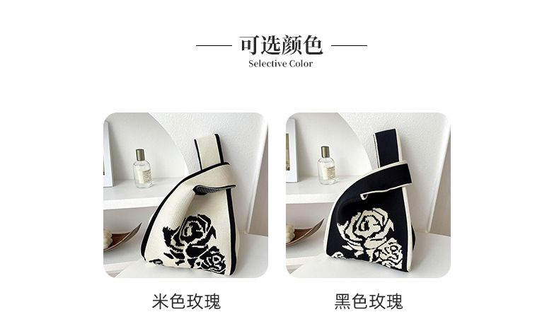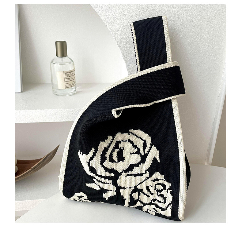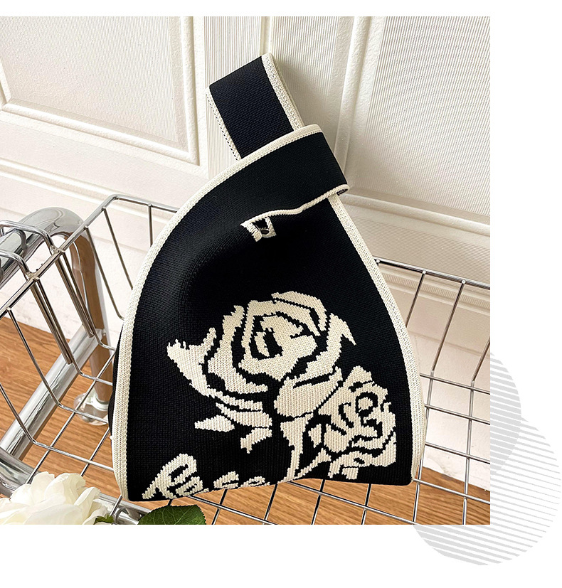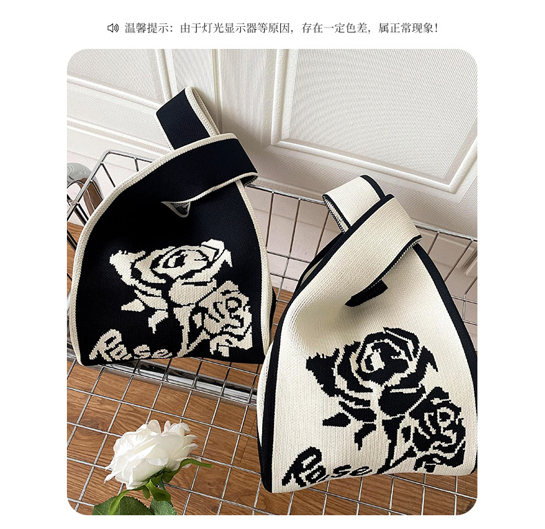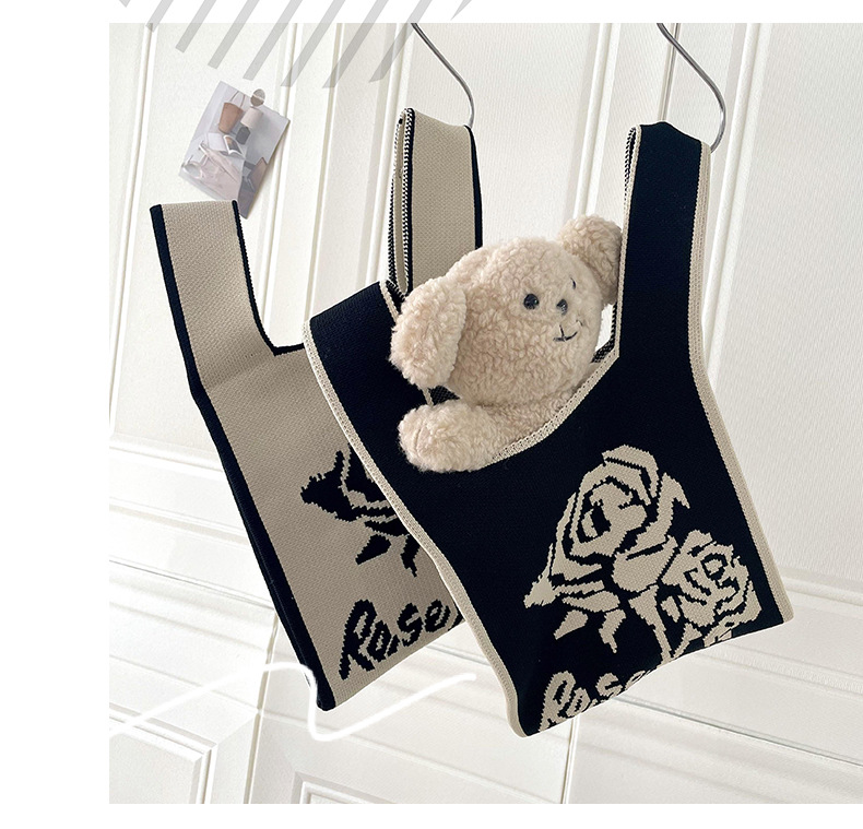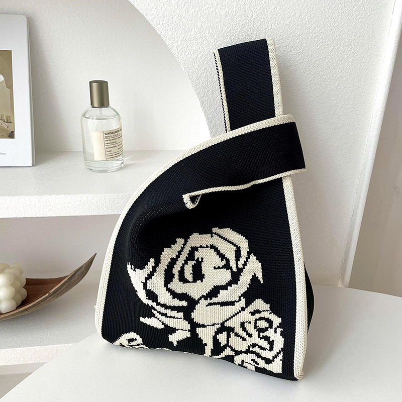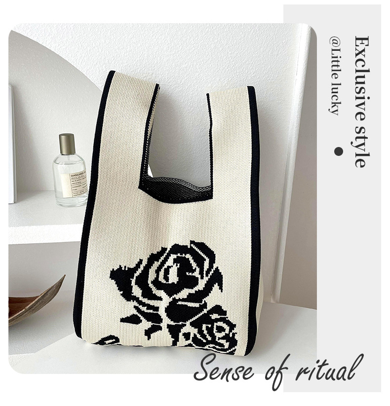조끼 가방 조끼 가방 유행 니트 흑백 장미 어깨 핸드백 대용량 통근 토트 백