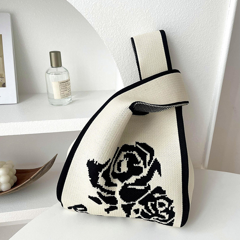 조끼 가방 조끼 가방 유행 니트 흑백 장미 어깨 핸드백 대용량 통근 토트 백스토어 가기
