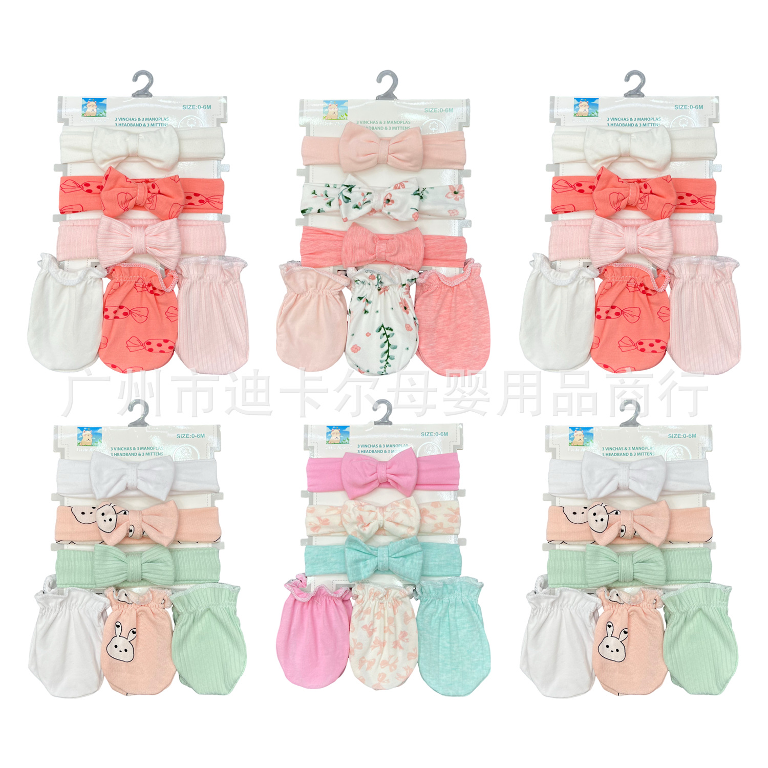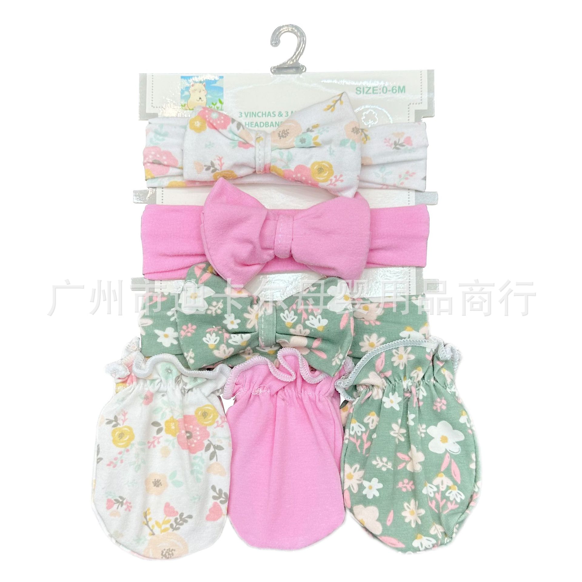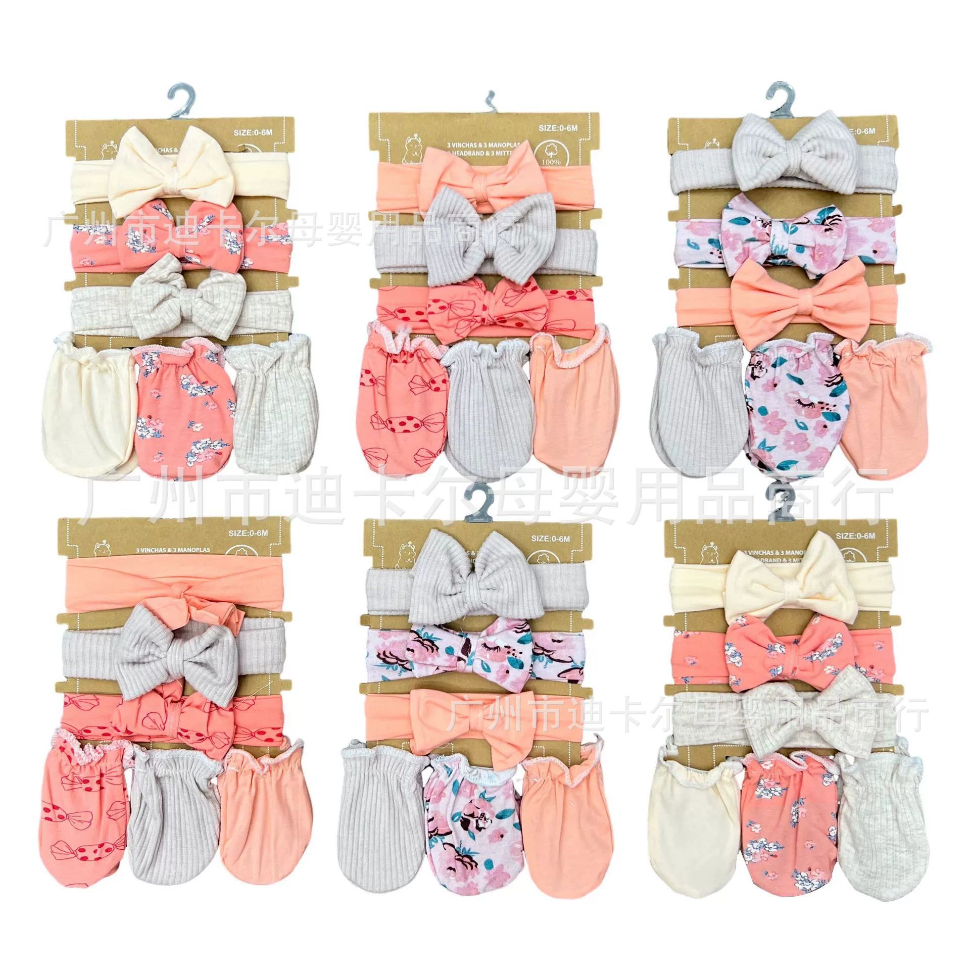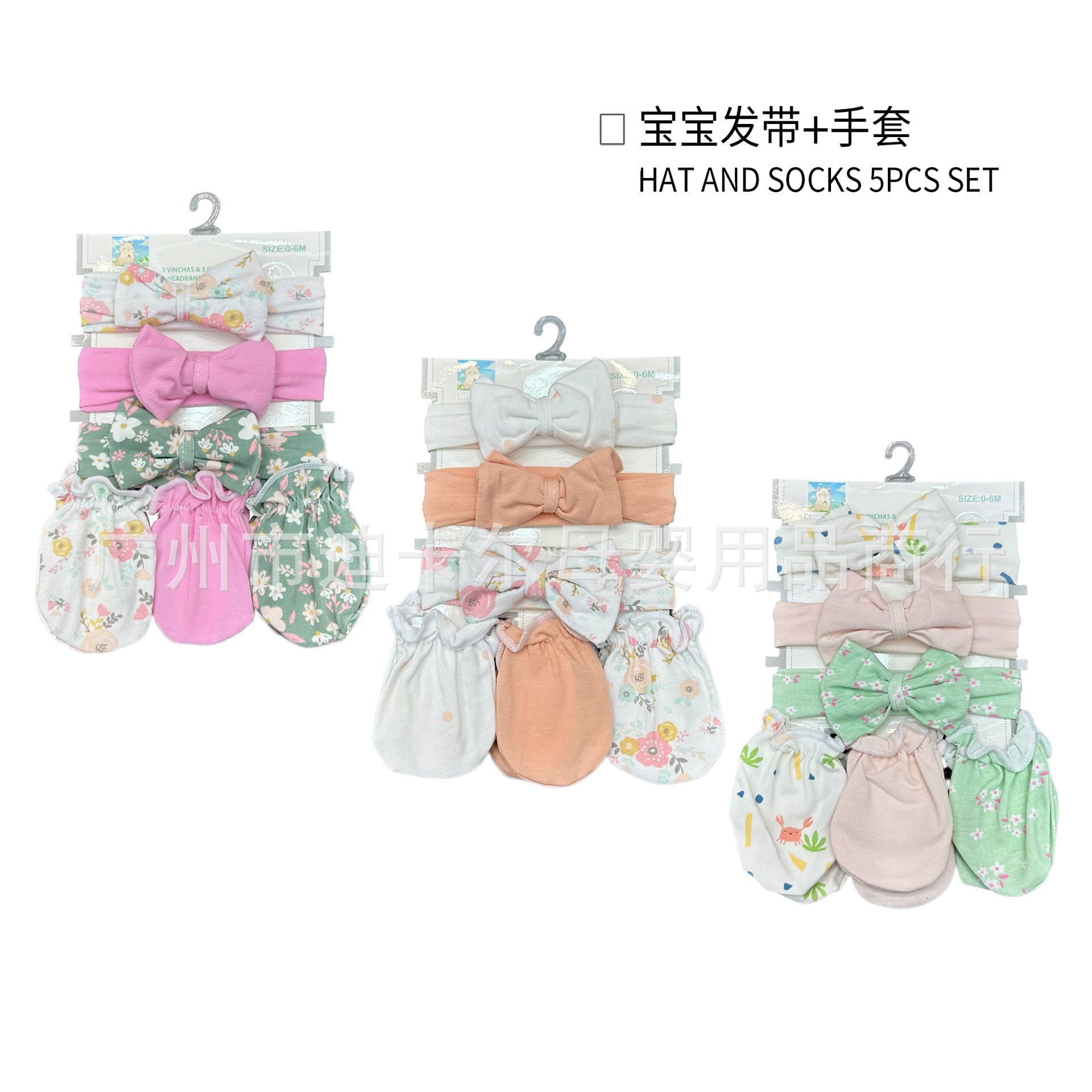 국경 신제품 아기 어린이 스타일 아기 소녀 헤어 밴드 장갑 꽃 손 양말 6 피스 세트 보름달 도매스토어 가기