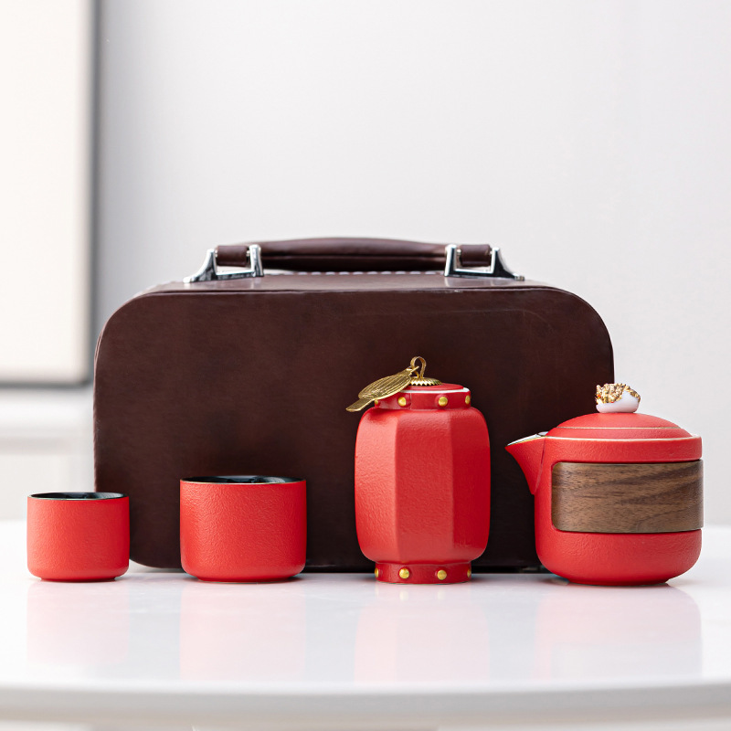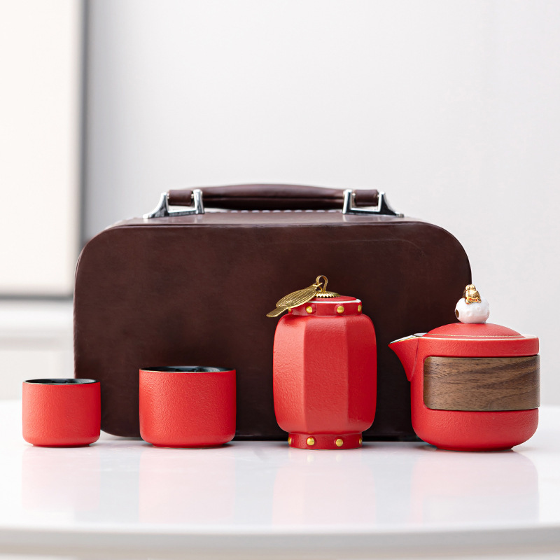 축제 휴대용 쿵푸 차 세트 세트 익스프레스 컵 한 냄비 두 컵 차 케이지 차 컵 사업 동반 선물스토어 가기