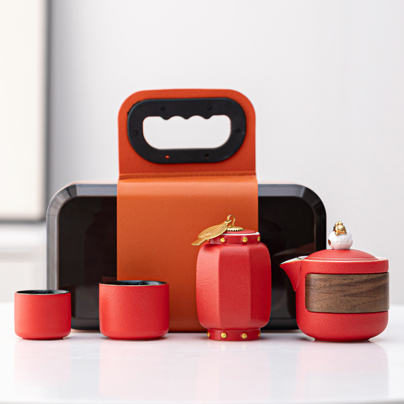 商务兔年伴手礼品便携式功夫茶具套装快客杯一壶两杯茶叶罐泡茶杯