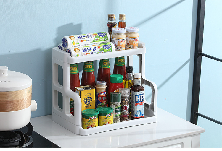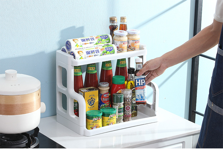 가정용 주방 2 단 스토리지 랙 바닥 향신료 랙 주방 용품 보관 랙 조리대 나이프 랙 보관 랙스토어 가기