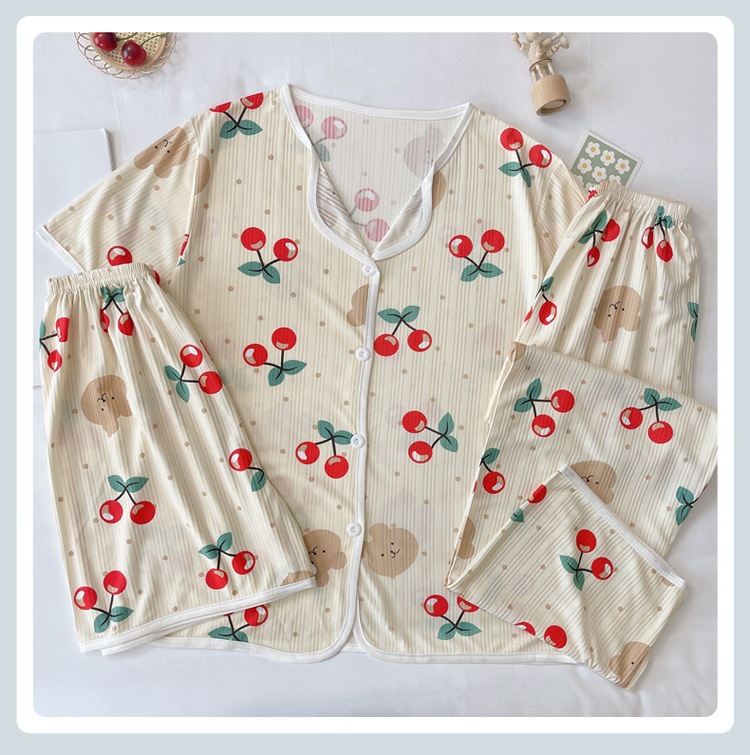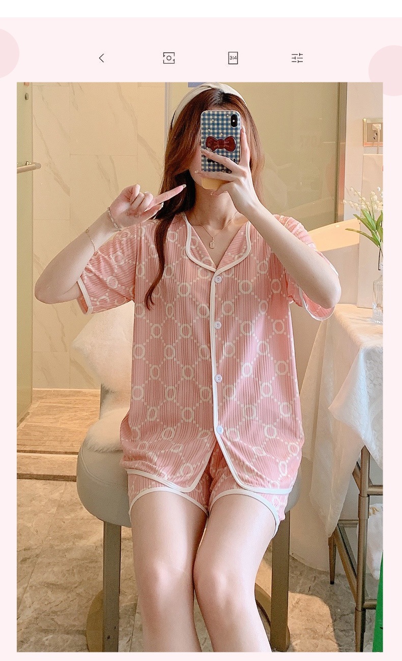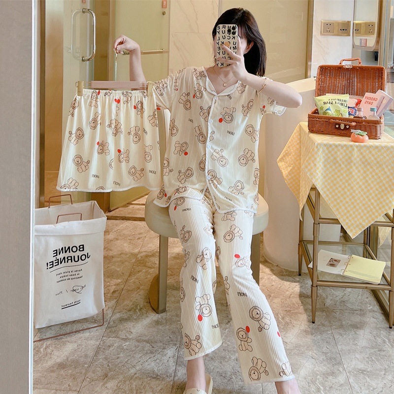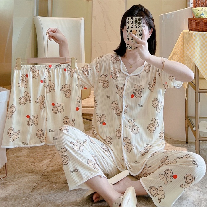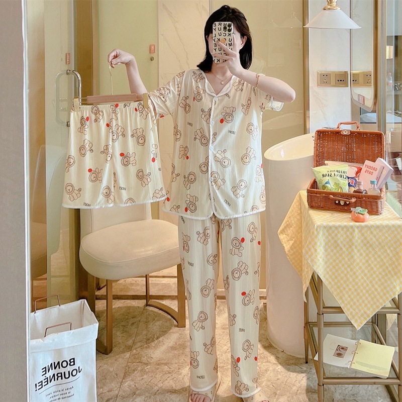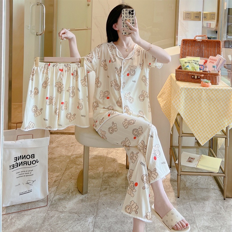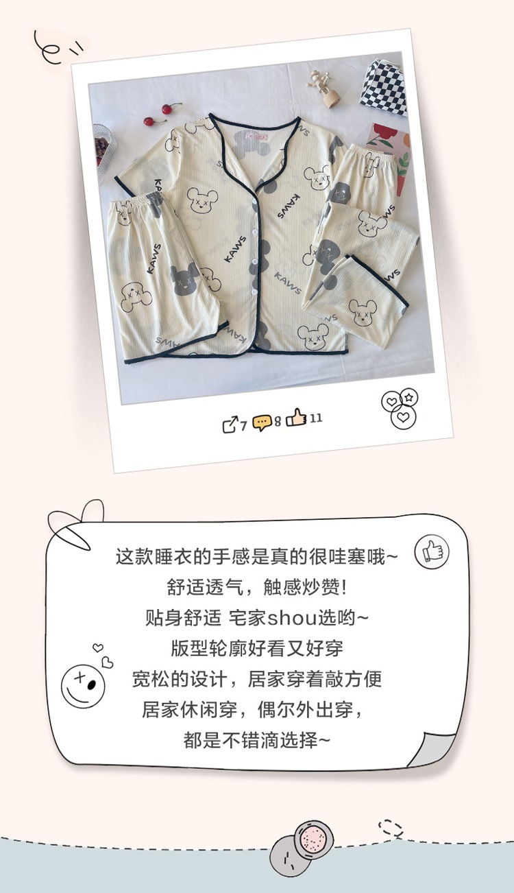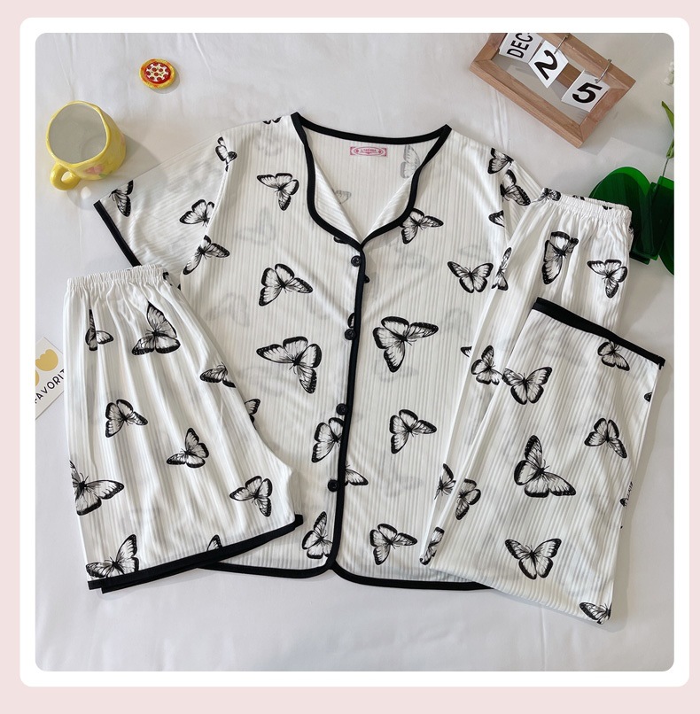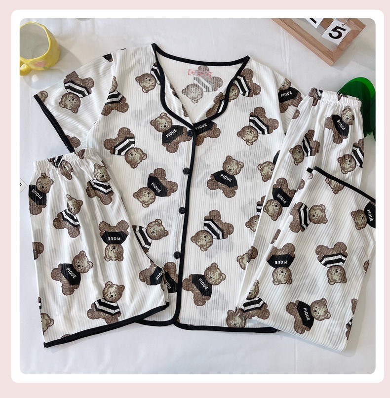 한국판 활 쓰리피스 파자마 여성용 느슨한 반팔 팬츠 Summer Live 단체 구입 마이크로 업용품 크로스 보더스토어 가기