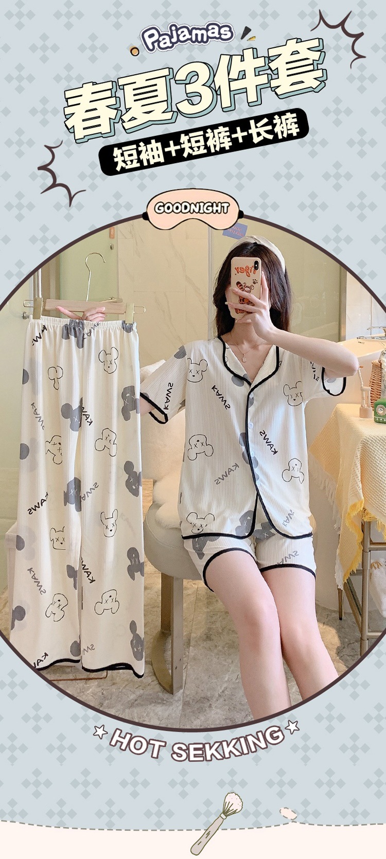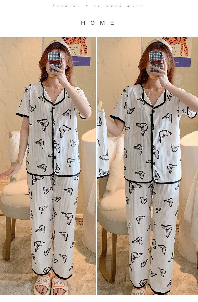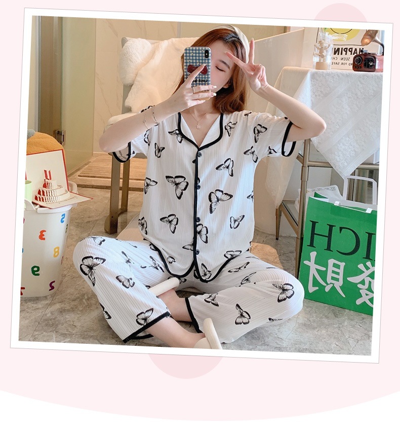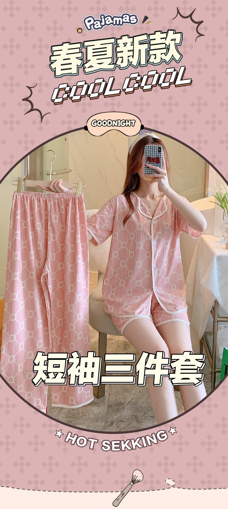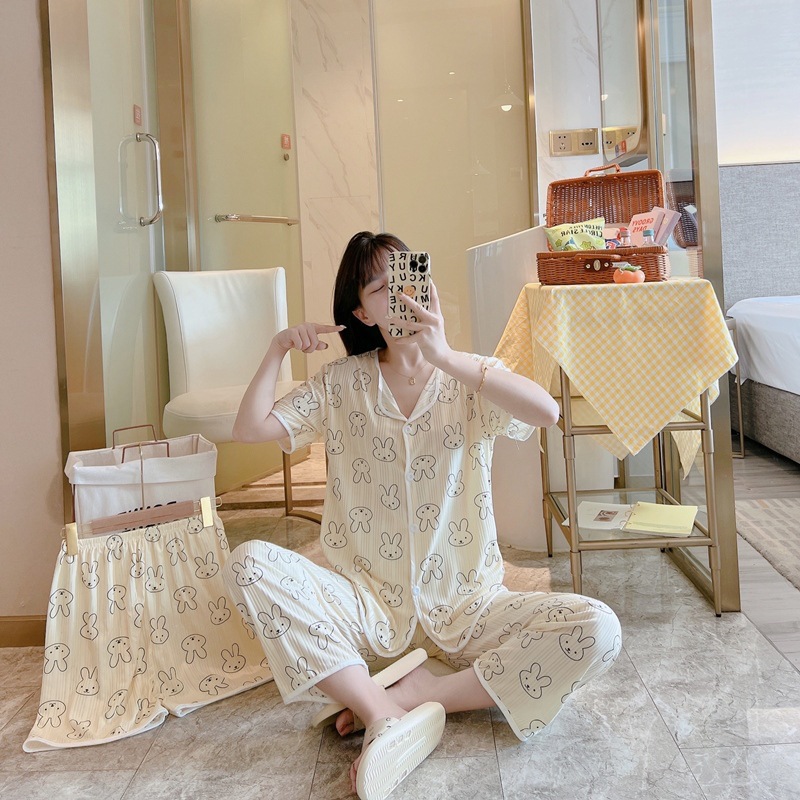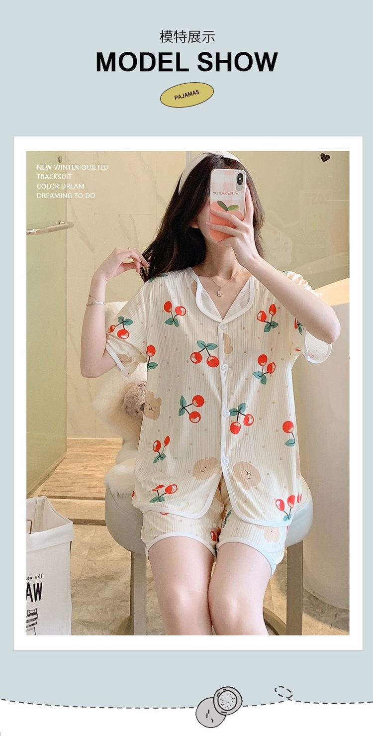 한국판 활 쓰리피스 파자마 여성용 느슨한 반팔 팬츠 Summer Live 단체 구입 마이크로 업용품 크로스 보더스토어 가기