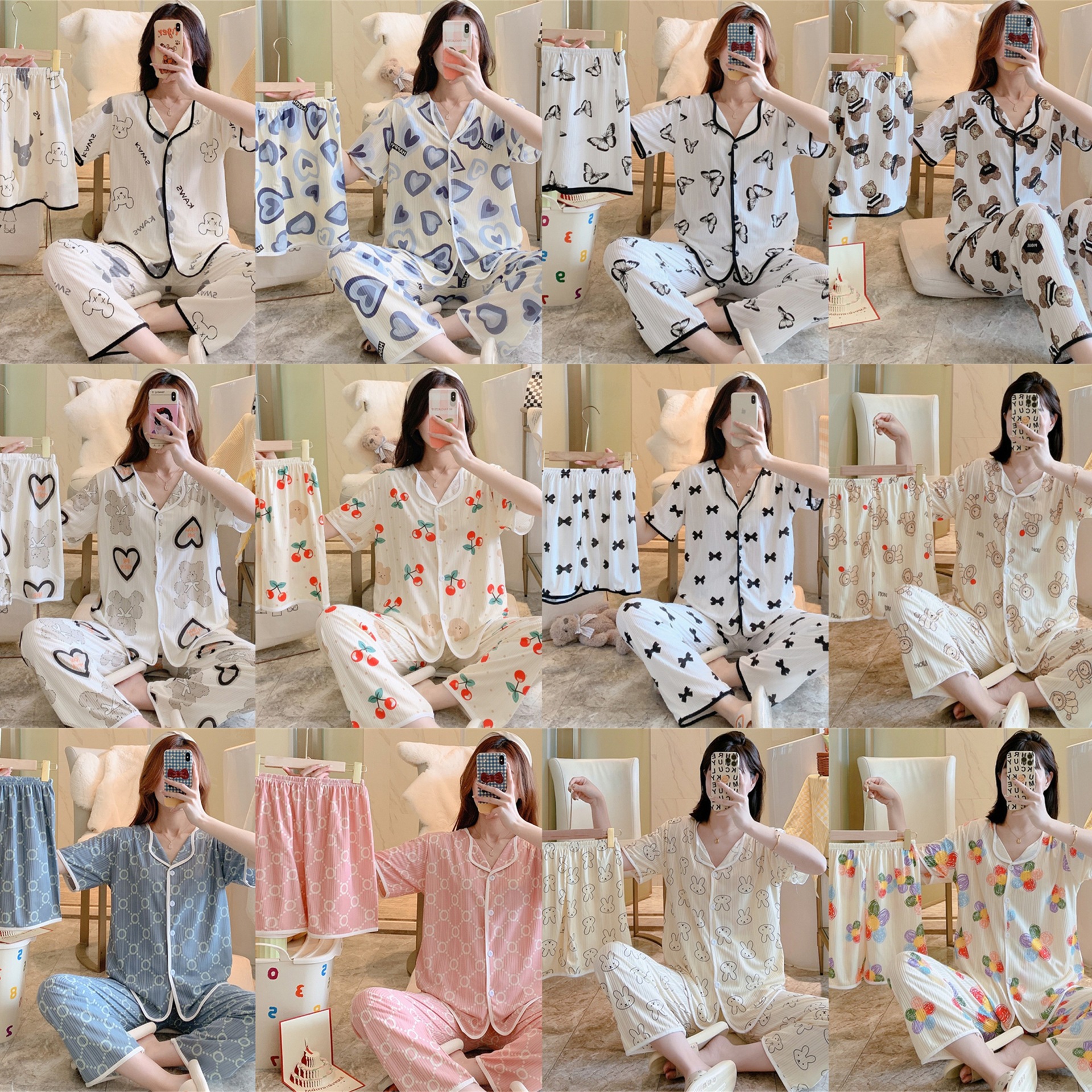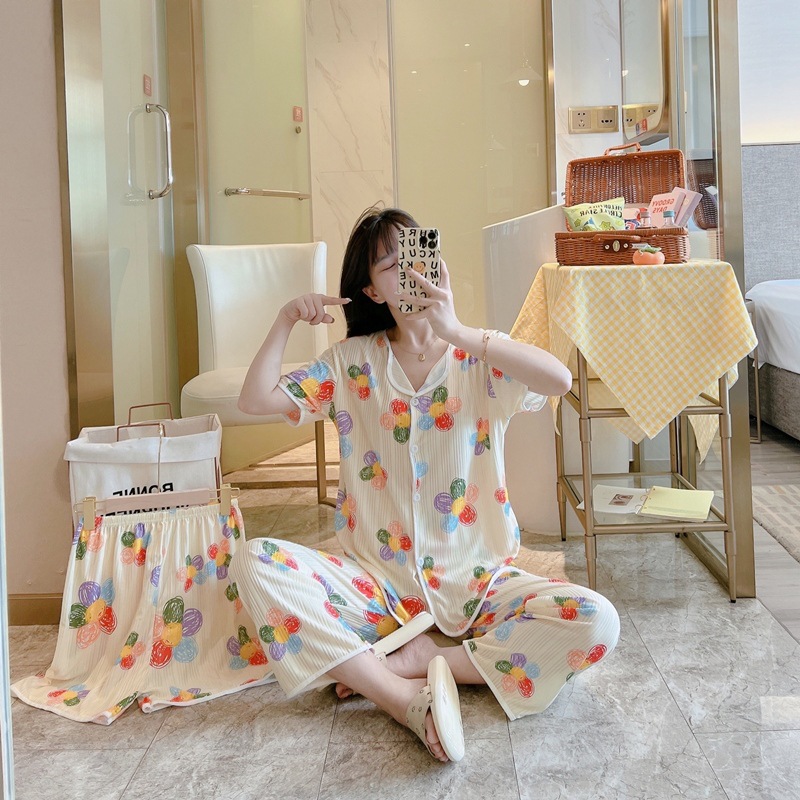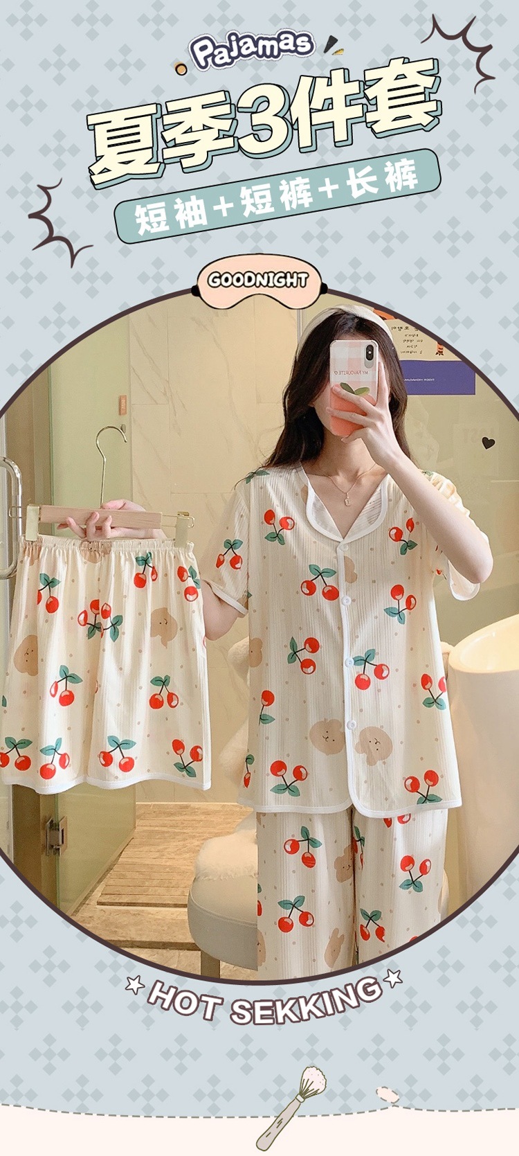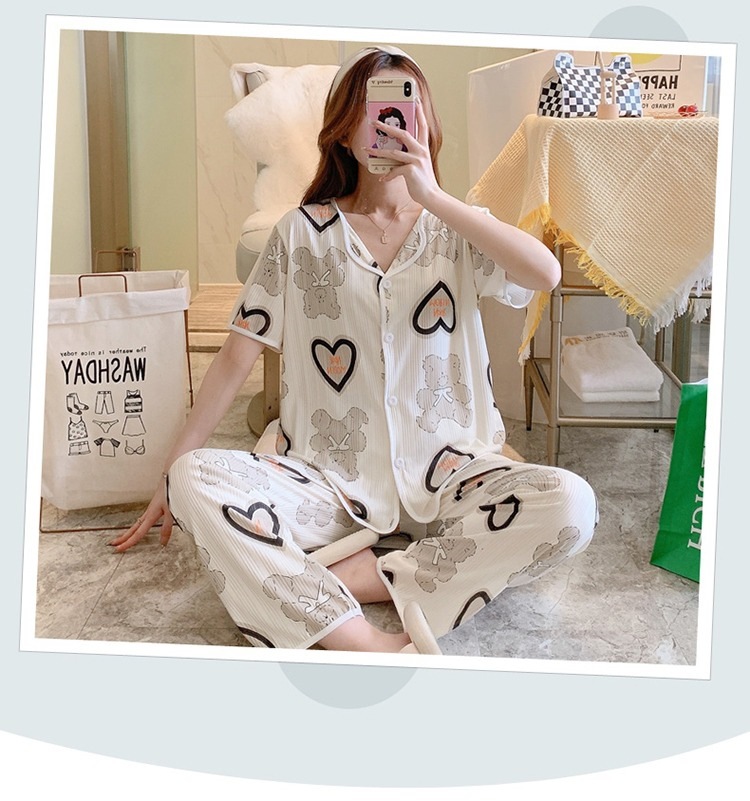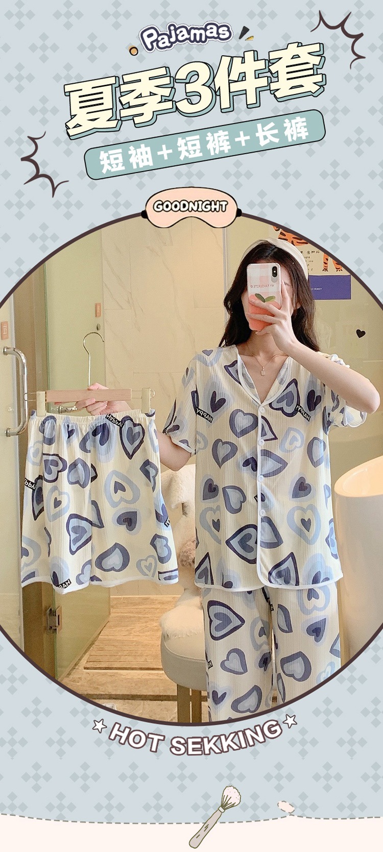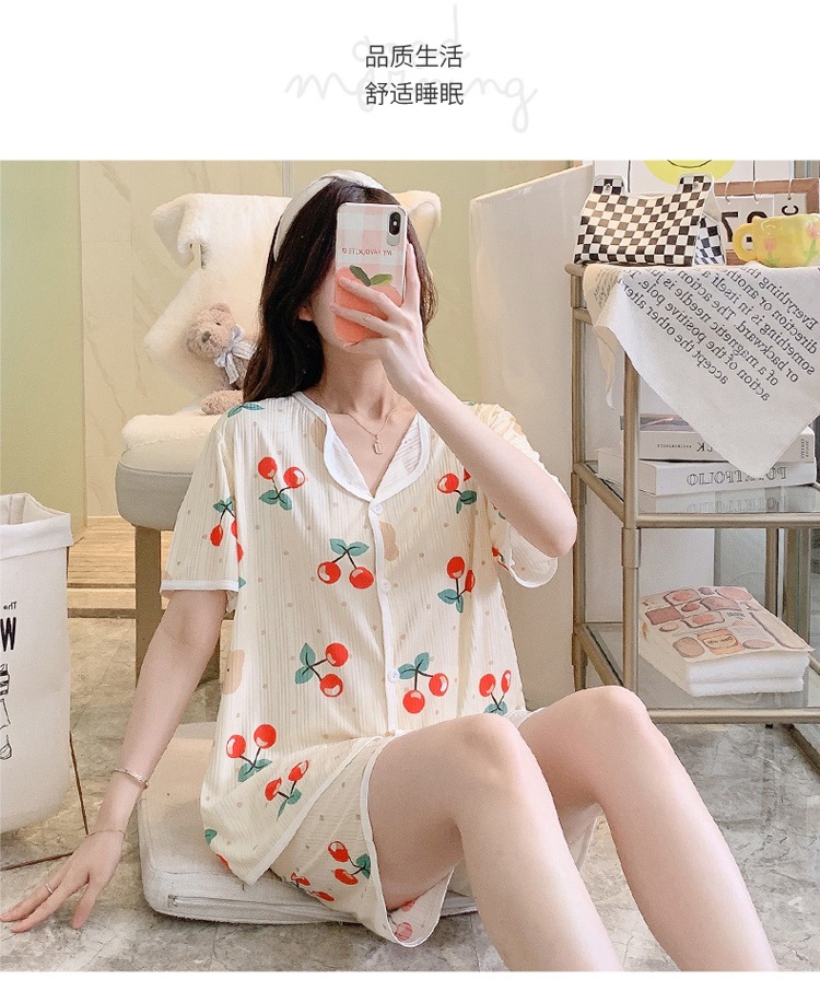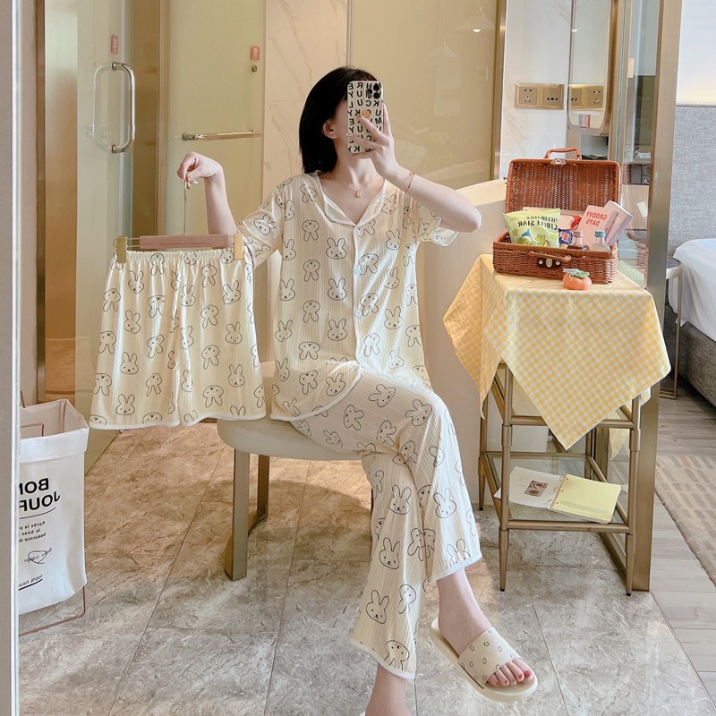 한국판 활 쓰리피스 파자마 여성용 느슨한 반팔 팬츠 Summer Live 단체 구입 마이크로 업용품 크로스 보더스토어 가기