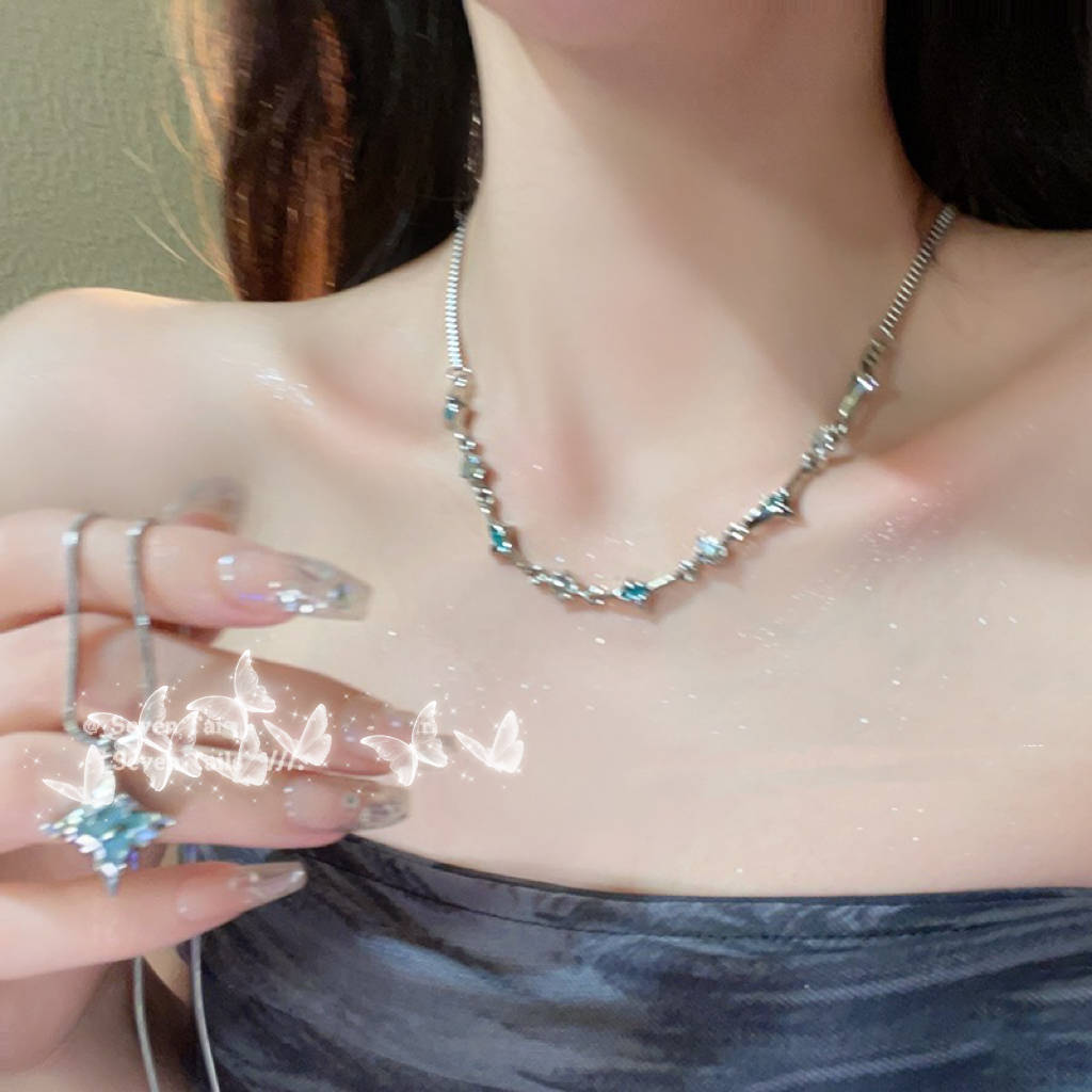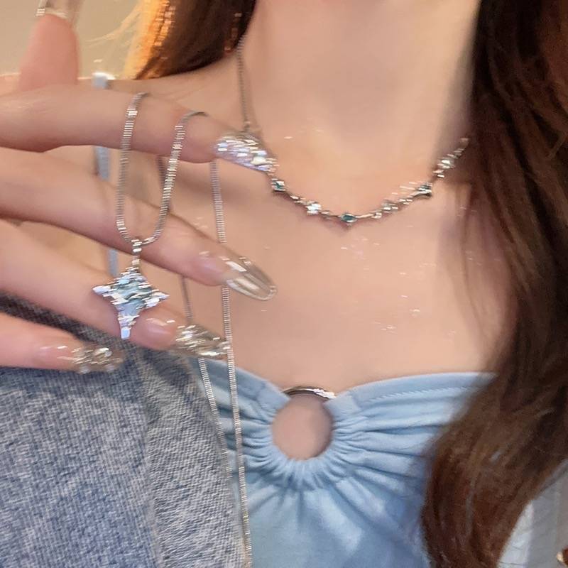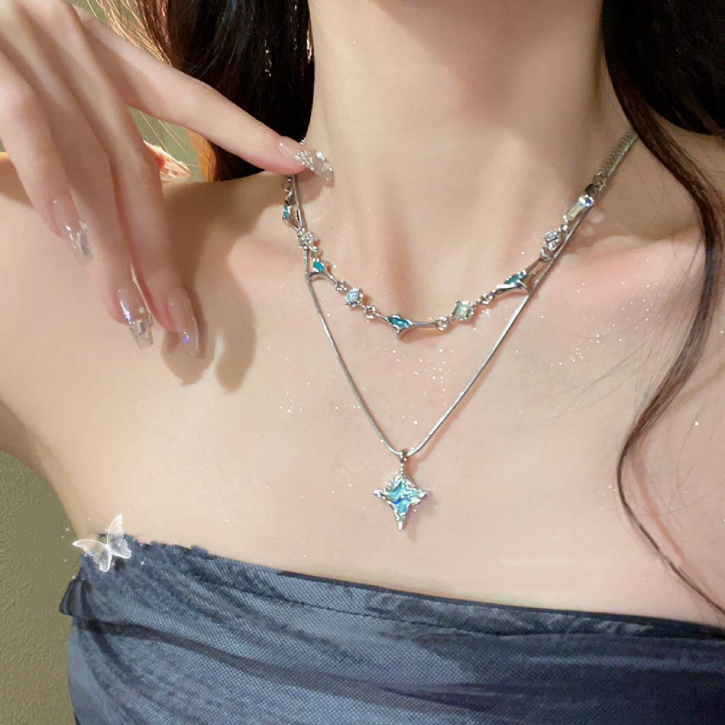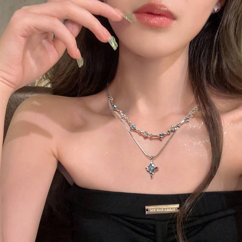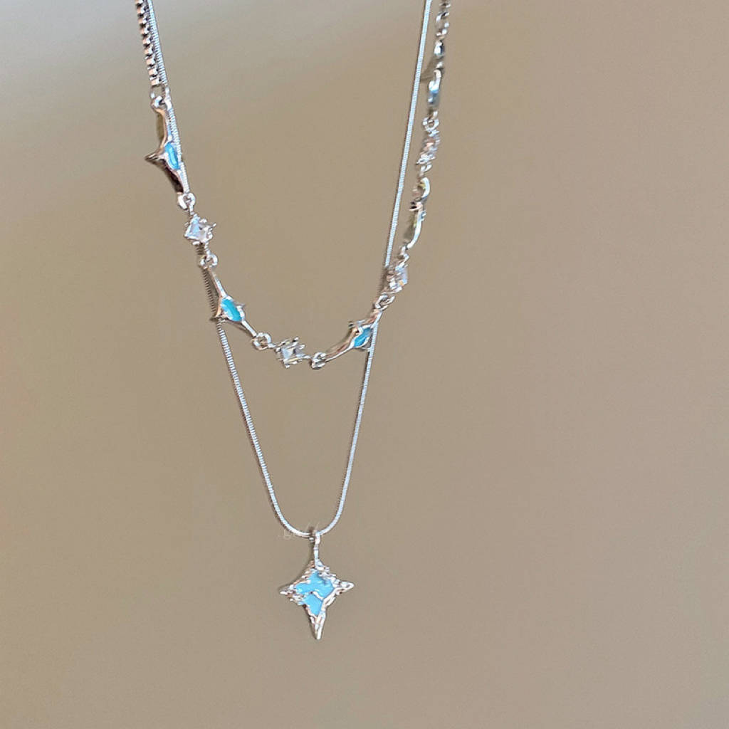더블 레이어 블루 포 맨 스타 지르콘 목걸이 여성용 여름 틈새 디자인 감각 액세서리 패션 우아한 쇄골 체인스토어 가기