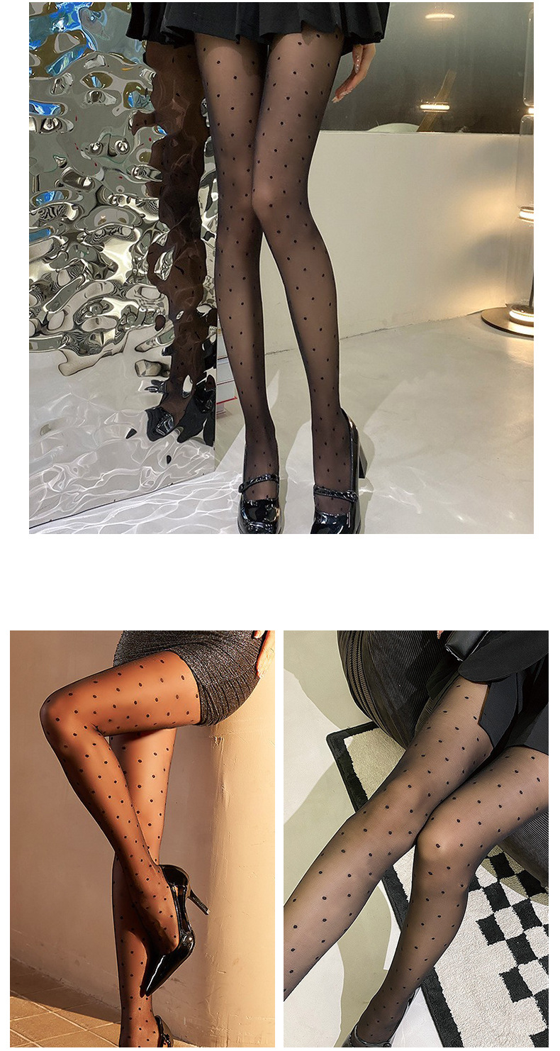 도트 자카드 코어-스푸드 실크 스타킹 바지 폴카 도트 블랙 섹시 얇은 도트 독특한 자카드 양말스토어 가기