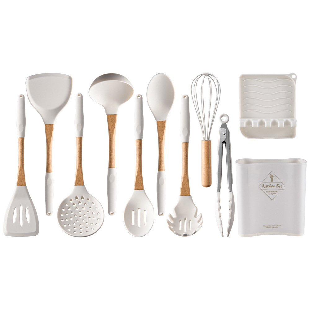 단단한 나무 손잡이 실리콘 주방 용품 11 종 세트 세트 요리 주방 도구 주걱 스푼 11 종 세트 세트스토어 가기