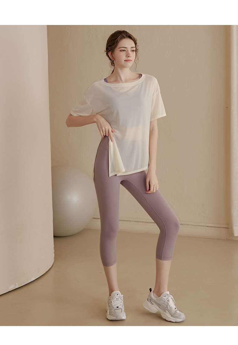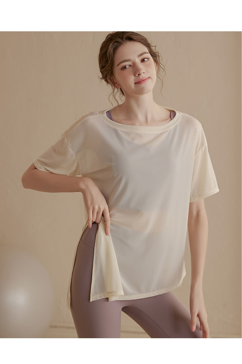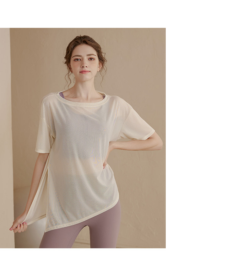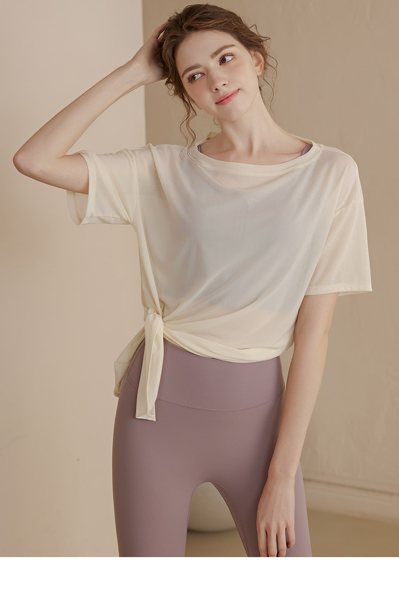 느슨한 경량 스포츠 블라우스 여성용 아이스 실크 통기성 요가복 반팔 티셔츠 탑 속건 달리기 피트니스 의류스토어 가기